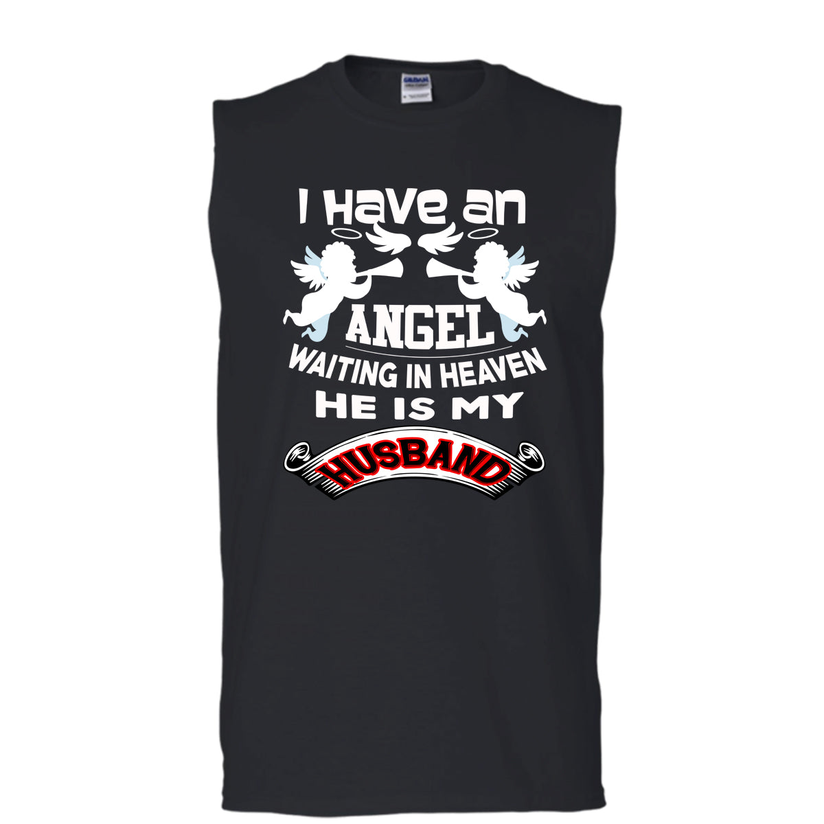 I Have An Angel Waiting Me In Heaven T Shirt, He Is My Husband T Shirt, Cool T Shirt (Men's Cotton Sleeveless)