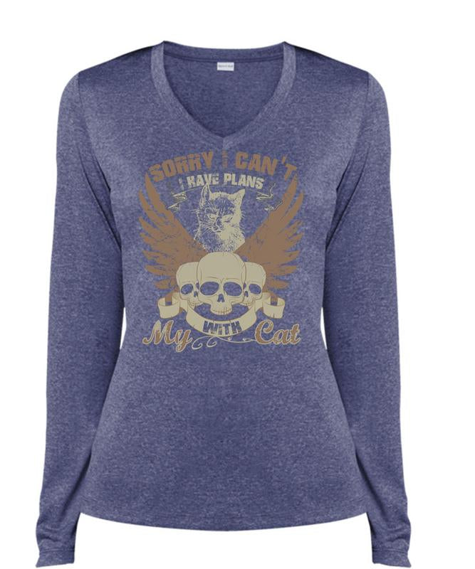 I Have Plans With My Cat T Shirt, I Love Cats T Shirt, Cool Shirt (Ladies LS Heather V-Neck)
