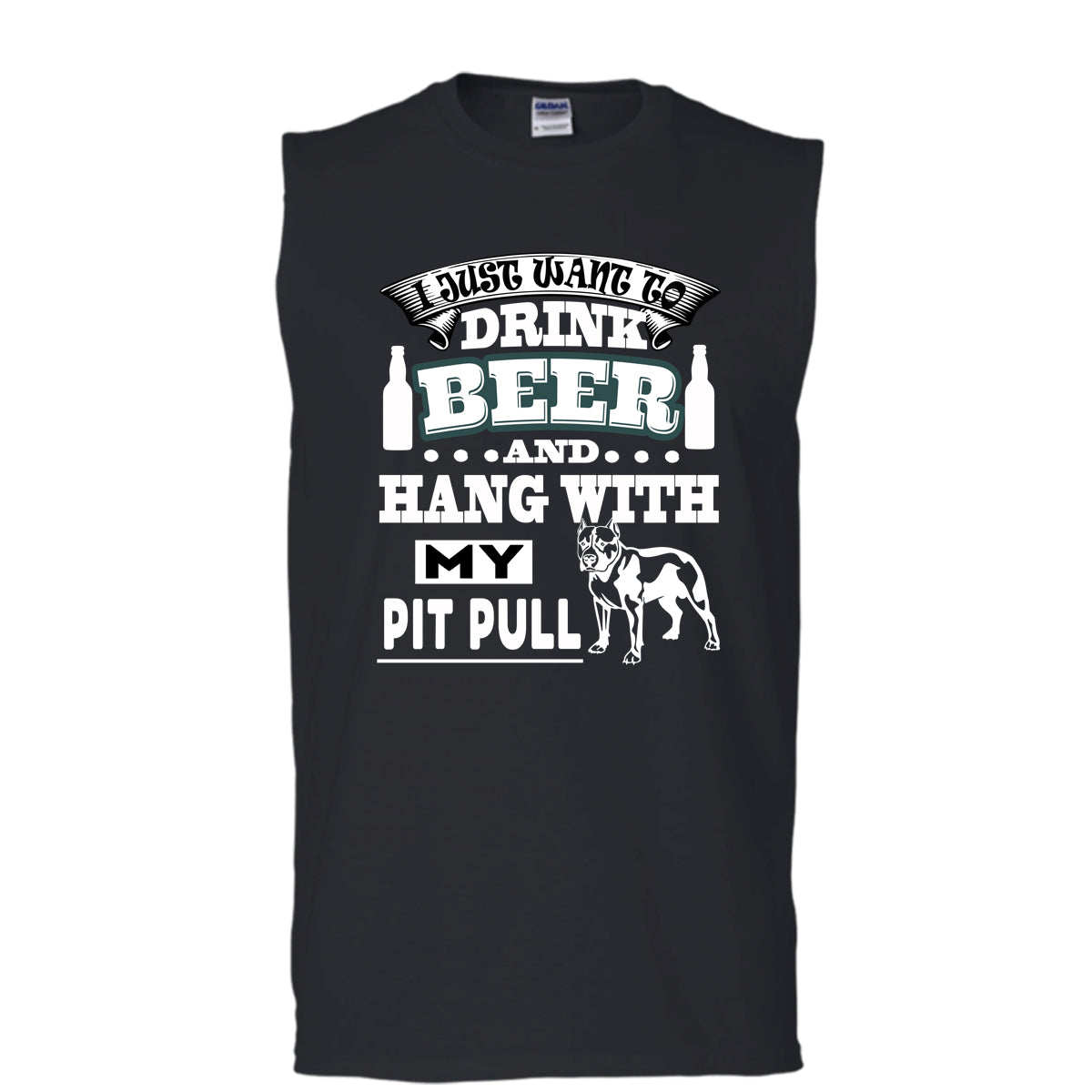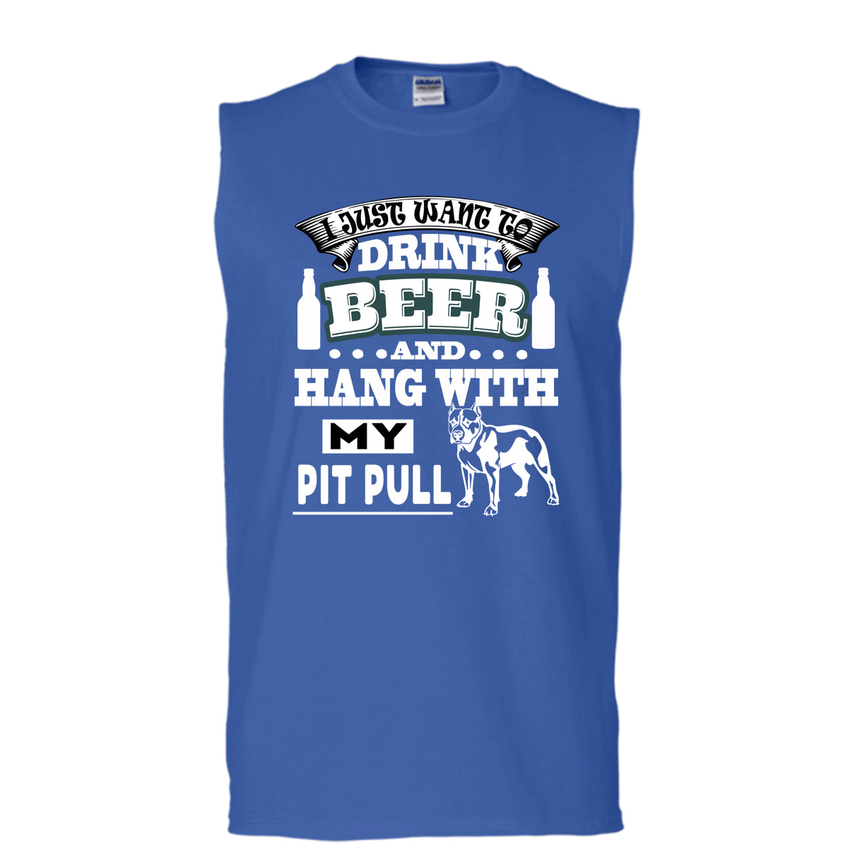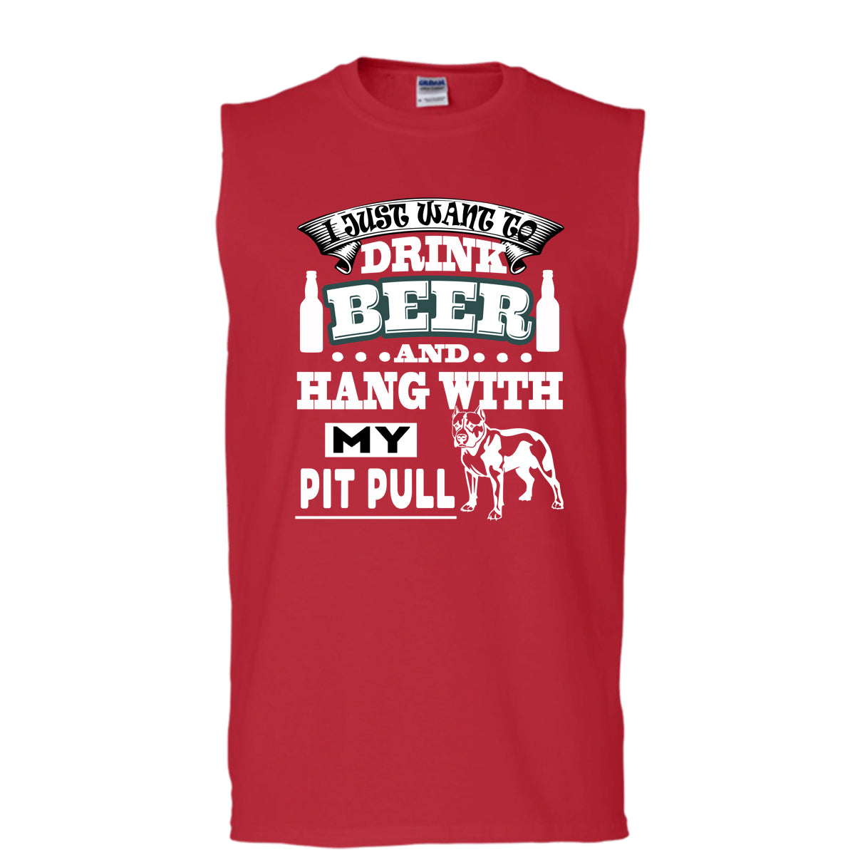 I Just Want To Drink Beer T Shirt, And Hang With My Pit Pull T Shirt, Cool T Shirt (Men's Cotton Sleeveless)