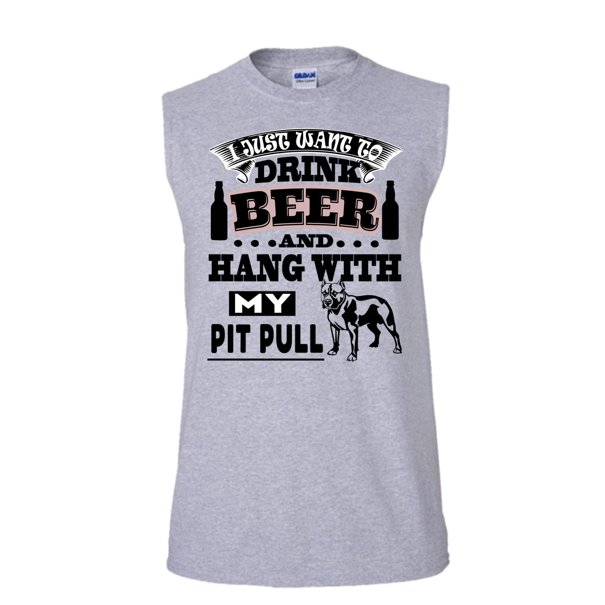I Just Want To Drink Beer T Shirt, Coolest Pit Bull Lover T Shirt, Awesome t-shirts (Men's Cotton Sleeveless)