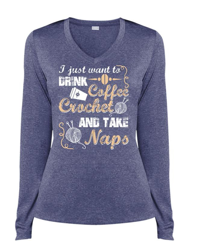 I Just Want To Drink Coffee T Shirt, Crochet And Take Naps T Shirt, Cool Shirt (Ladies LS Heather V-Neck)