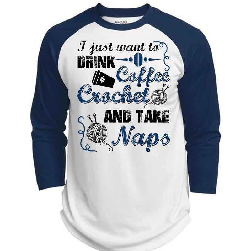 I Just Want To Drink Coffee T Shirt, I Love Crocheting T Shirt, Awesome T-Shirts (Polyester Game Baseball Jersey)