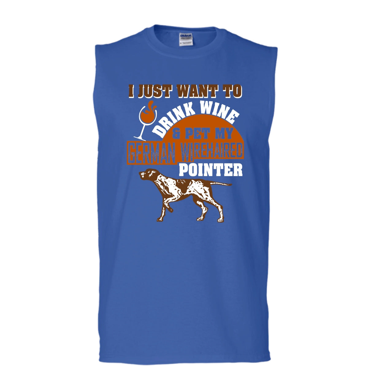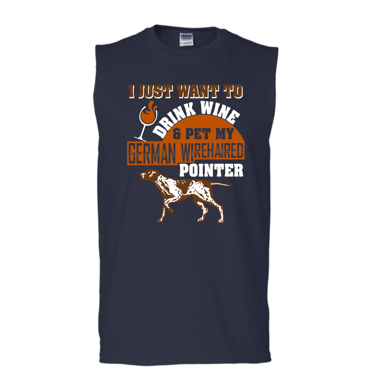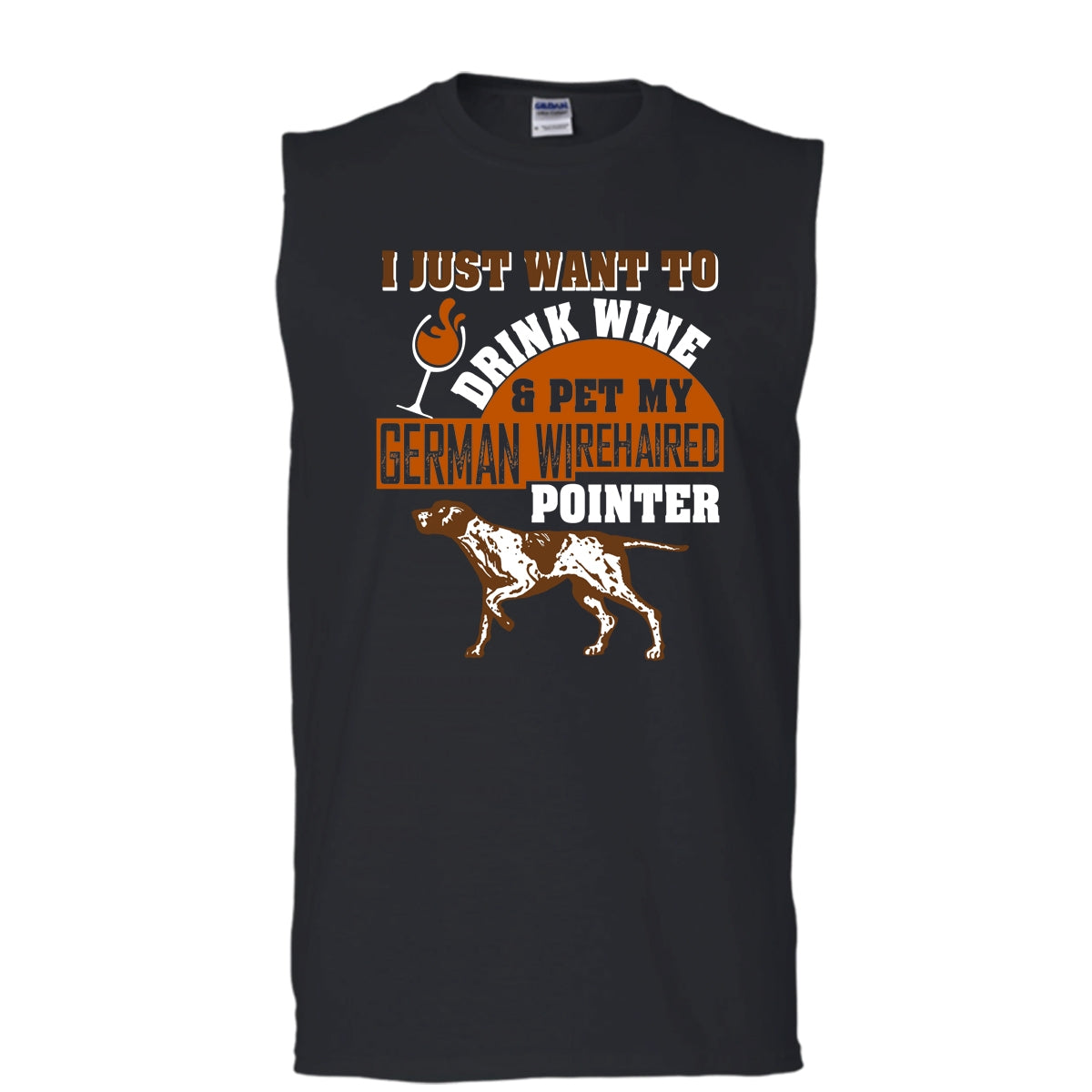 I Just Want To Drink Wine T Shirt, Pet My German Wirehaired Pointer T Shirt, Cool T Shirt (Men's Cotton Sleeveless)