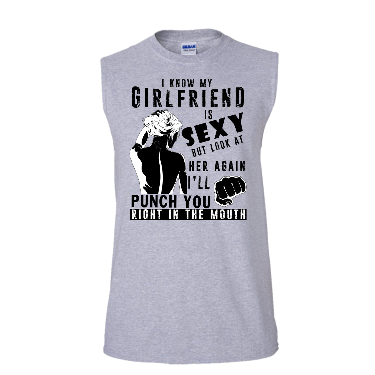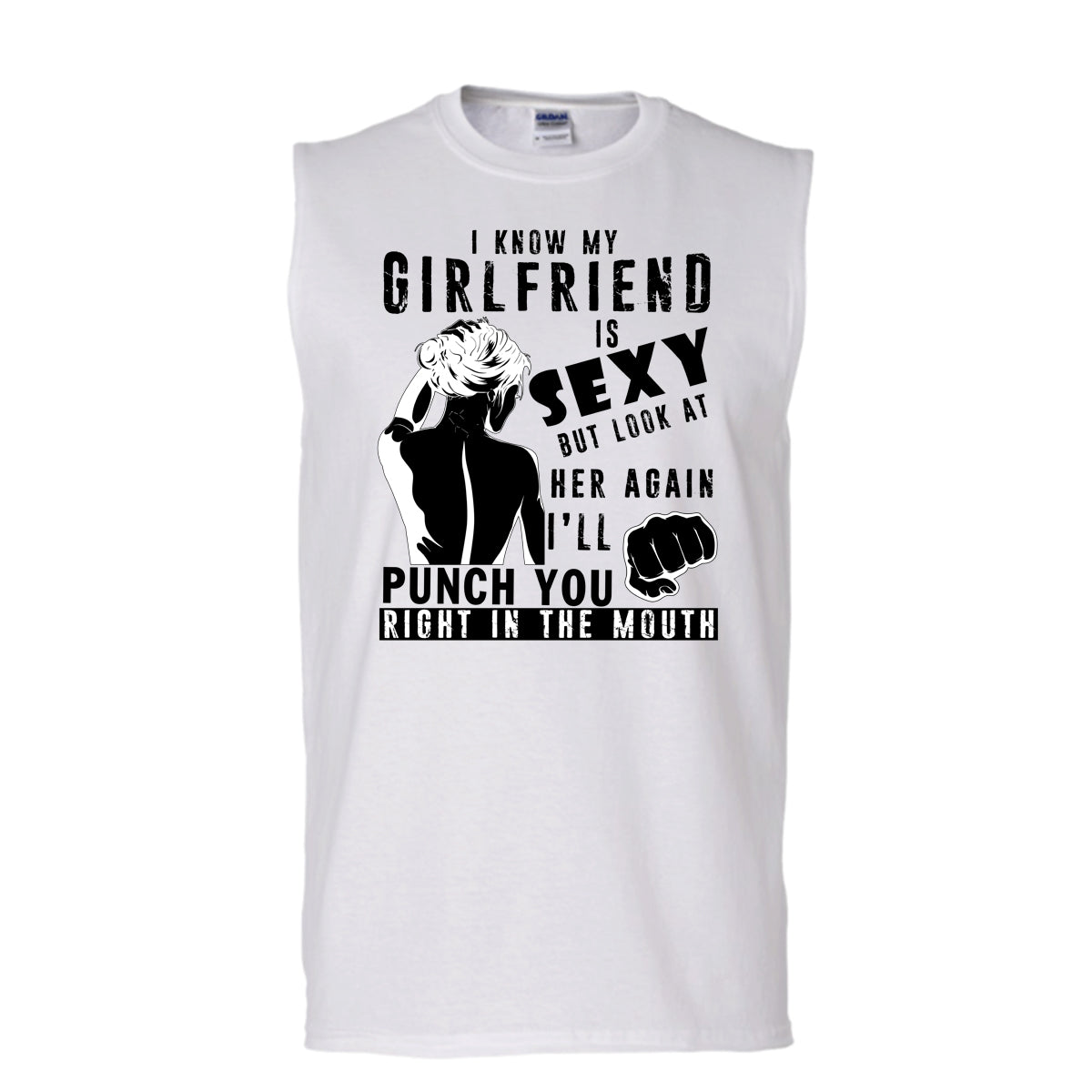 I Know My Girlfriend Is Sexy T Shirt, I Love My Wife T Shirt, Awesome t-shirts (Men's Cotton Sleeveless)