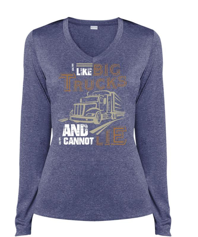 I Like Big Trucks T Shirt, I Love Trucking T Shirt, Cool Shirt (Ladies LS Heather V-Neck)