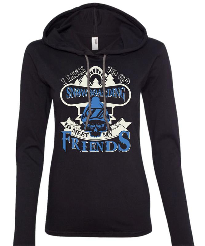 I Like To Go Snowboarding T Shirt, To Meet My Friends T Shirt (Anvil Ladies Ringspun Hooded)