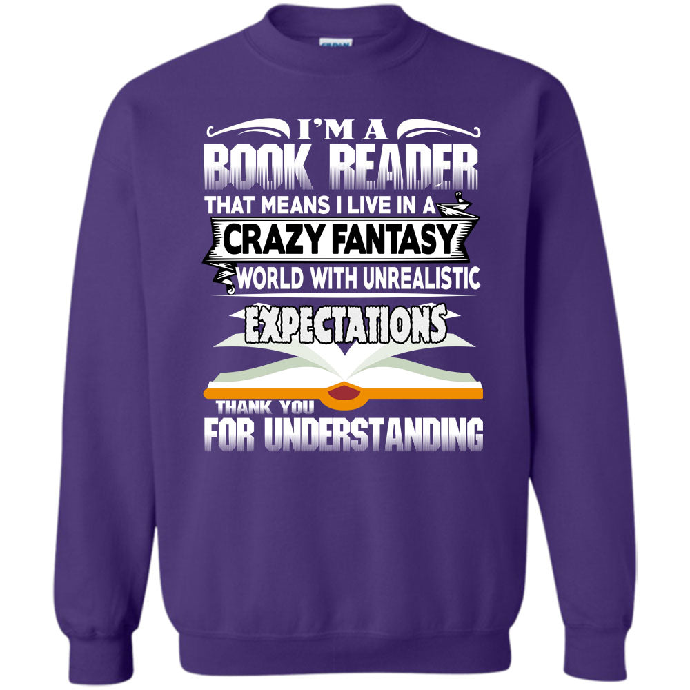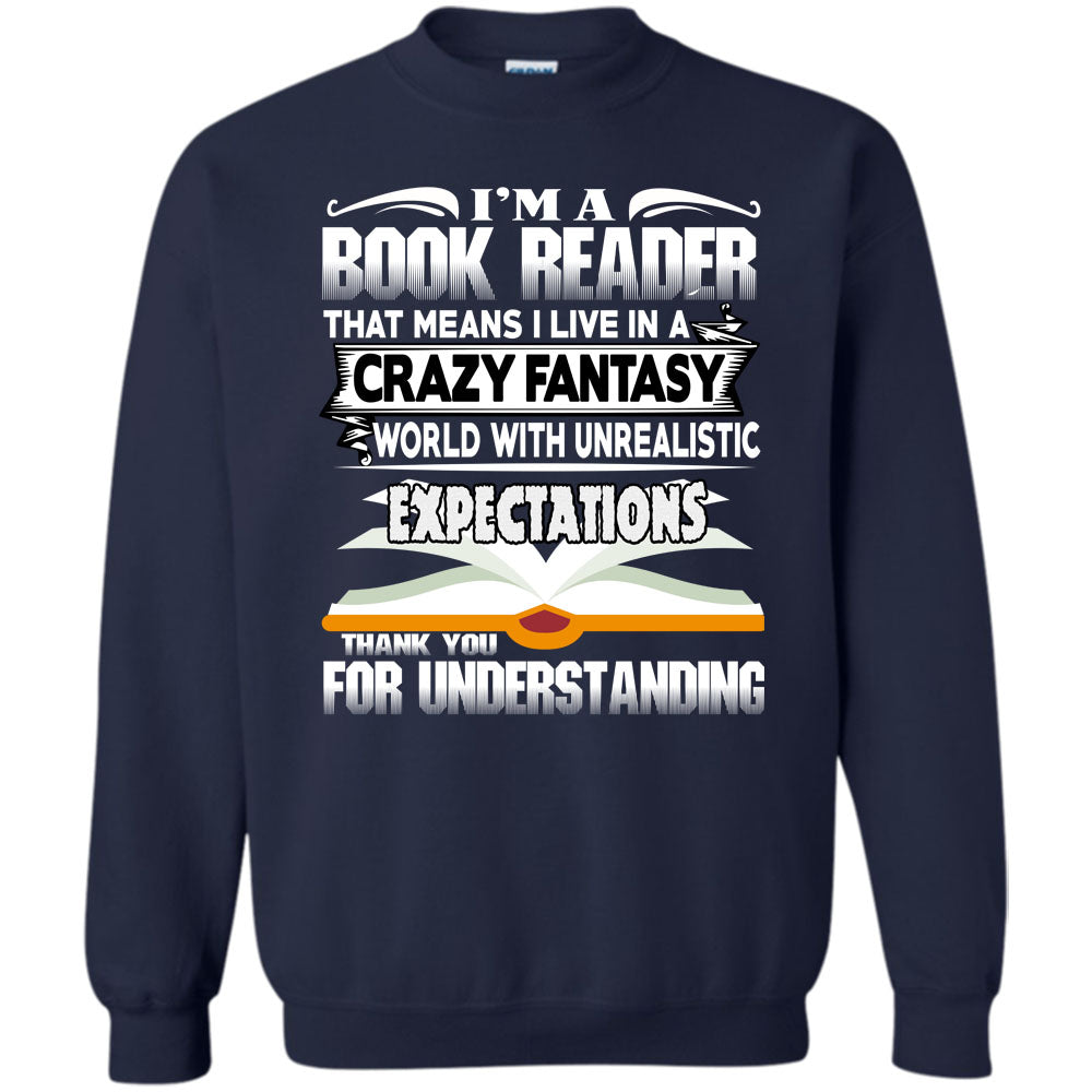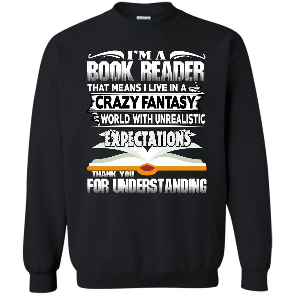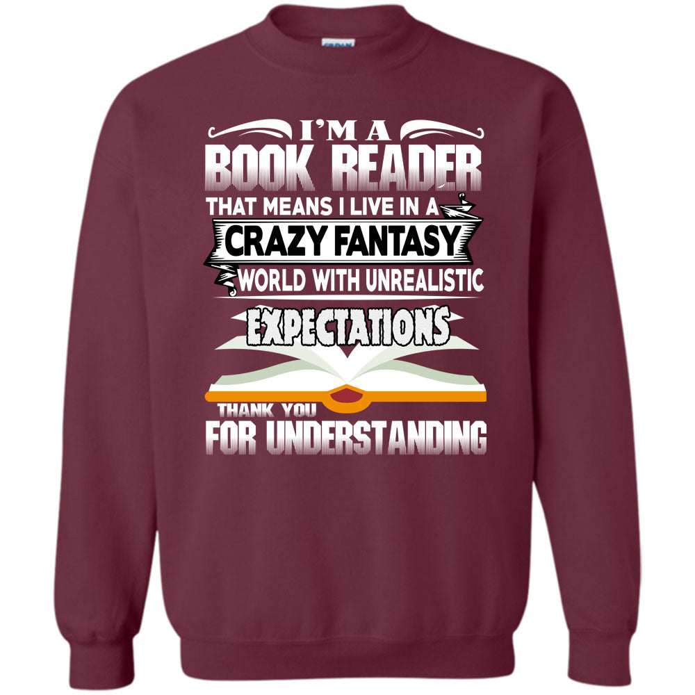I Live In A Crazy Fantsy World T Shirt, Coolest Book Reader Sweatshirt