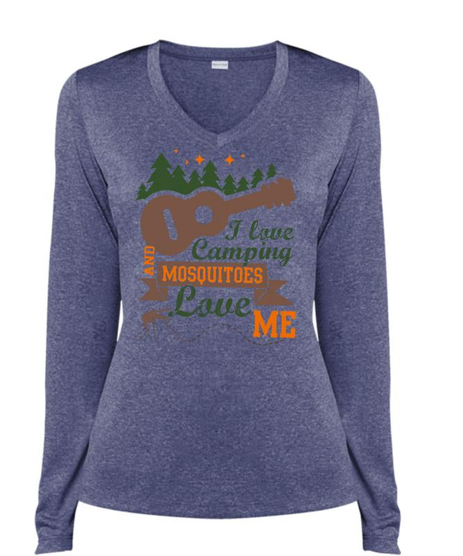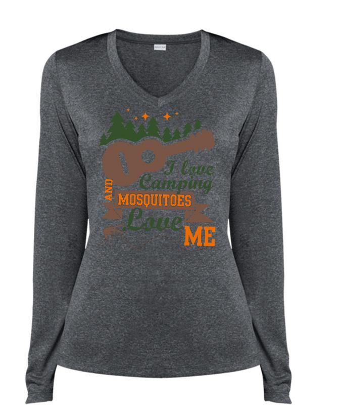I Love Camping T Shirt, Mosquitoes Love Me T Shirt, Cool Shirt (Ladies LS Heather V-Neck)