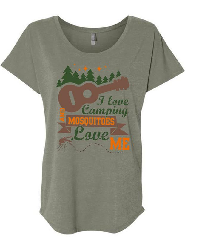 I Love Camping T Shirt, Mosquitoes Love Me T Shirt, Cool Shirt (Ladies' Triblend Dolman Sleeve)