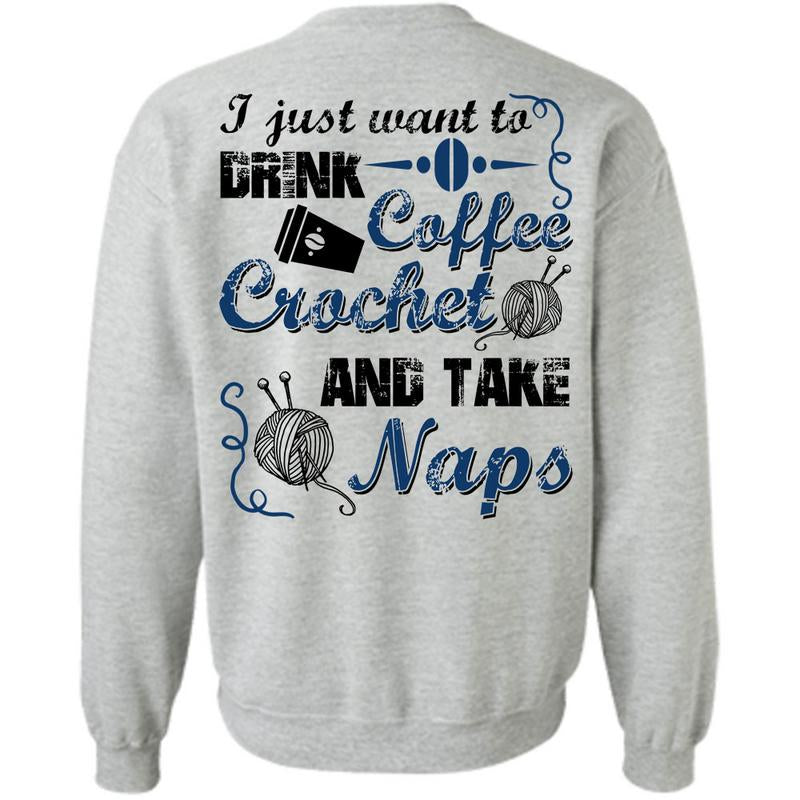 I Love Crocheting T Shirt, I Just Want To Drink Coffee Sweatshirt