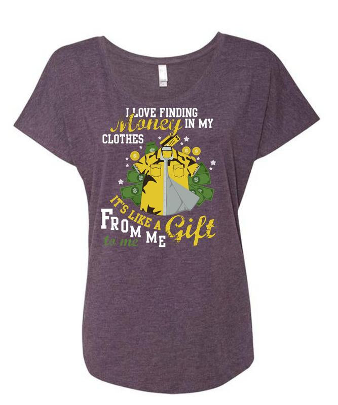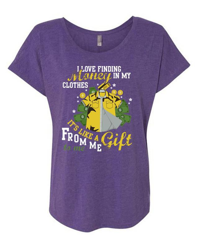 I Love Finding Money In My Clothes T Shirt, It's Like A Gift From Me T Shirt, Cool Shirt (Ladies' Triblend Dolman Sleeve)
