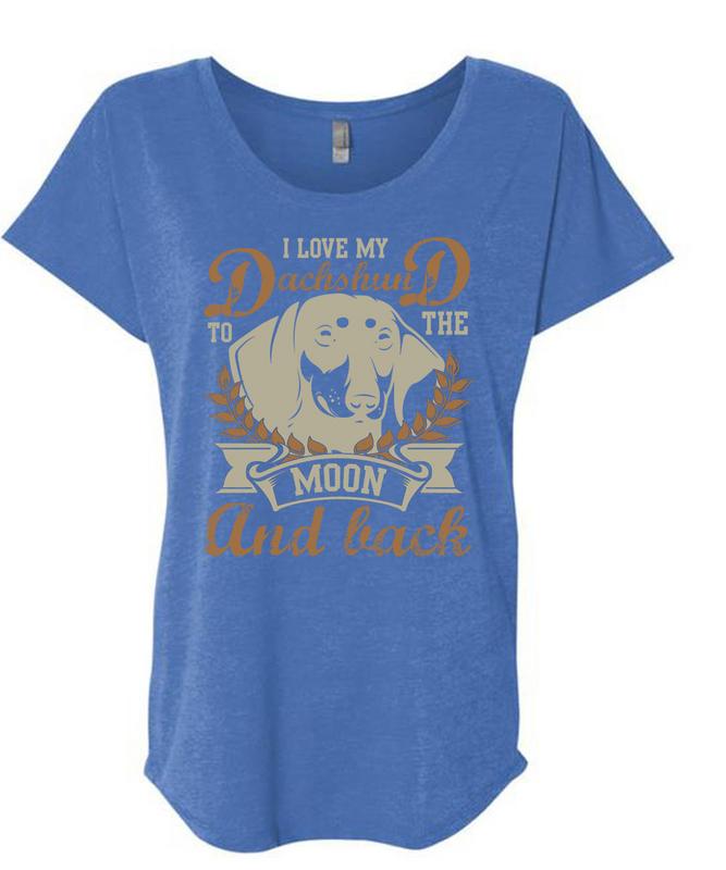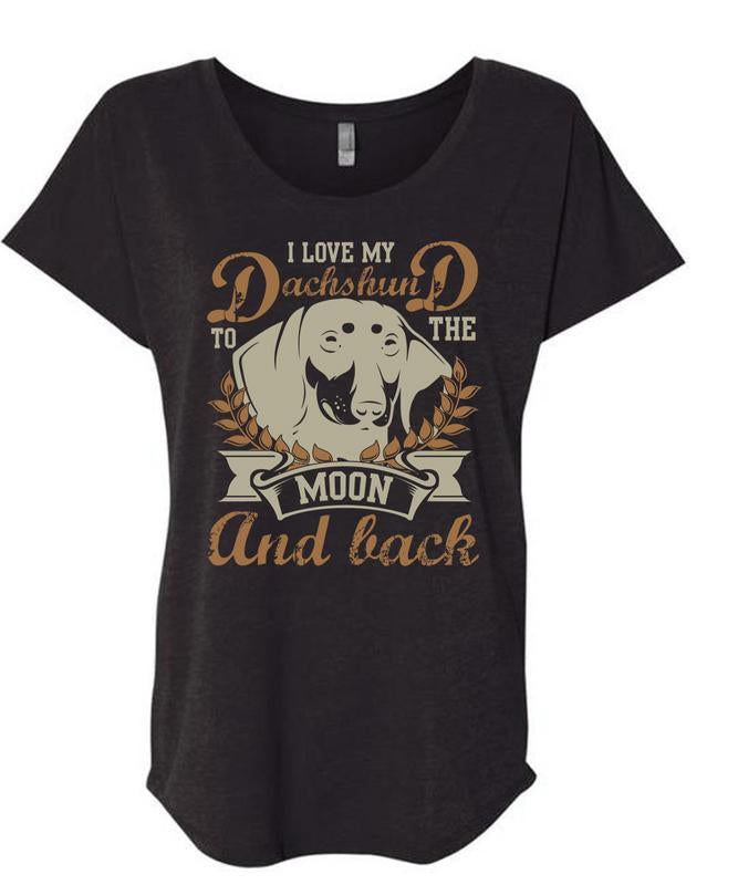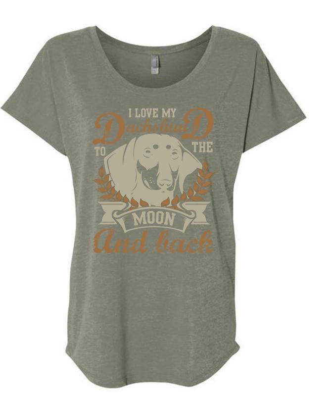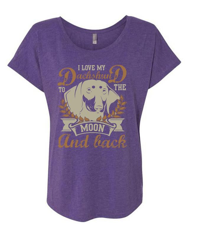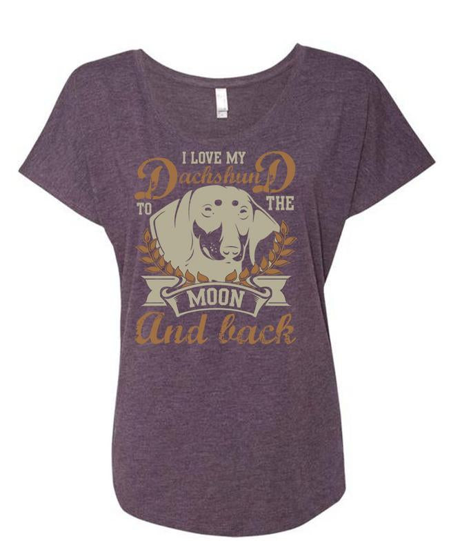 I Love My Dachshund To The Moon And Back T Shirt, My Favorite T Shirt, Cool Shirt (Ladies' Triblend Dolman Sleeve)