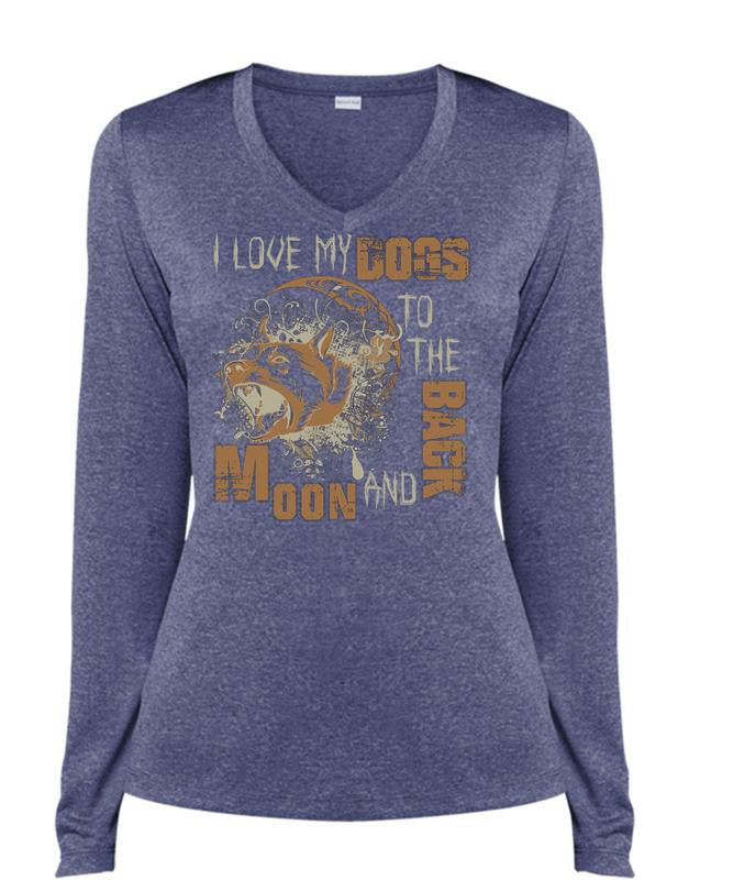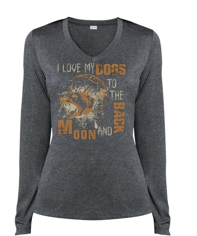 I Love My Dogs To The Moon And Back T Shirt, My Life T Shirt, Cool Shirt (Ladies LS Heather V-Neck)