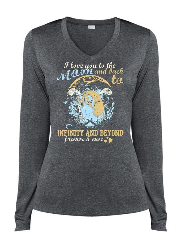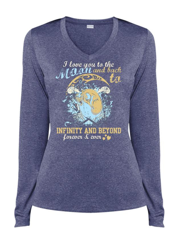 I Love You To The Moon And Back T Shirt, Infinity And Beyond Forever T Shirt, Cool Shirt (Ladies LS Heather V-Neck)