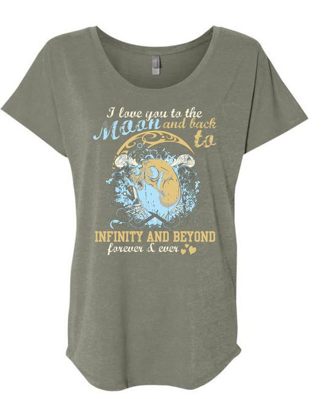 I Love You To The Moon And Back T Shirt, Infinity And Beyond Forever T Shirt, Cool Shirt (Ladies' Triblend Dolman Sleeve)