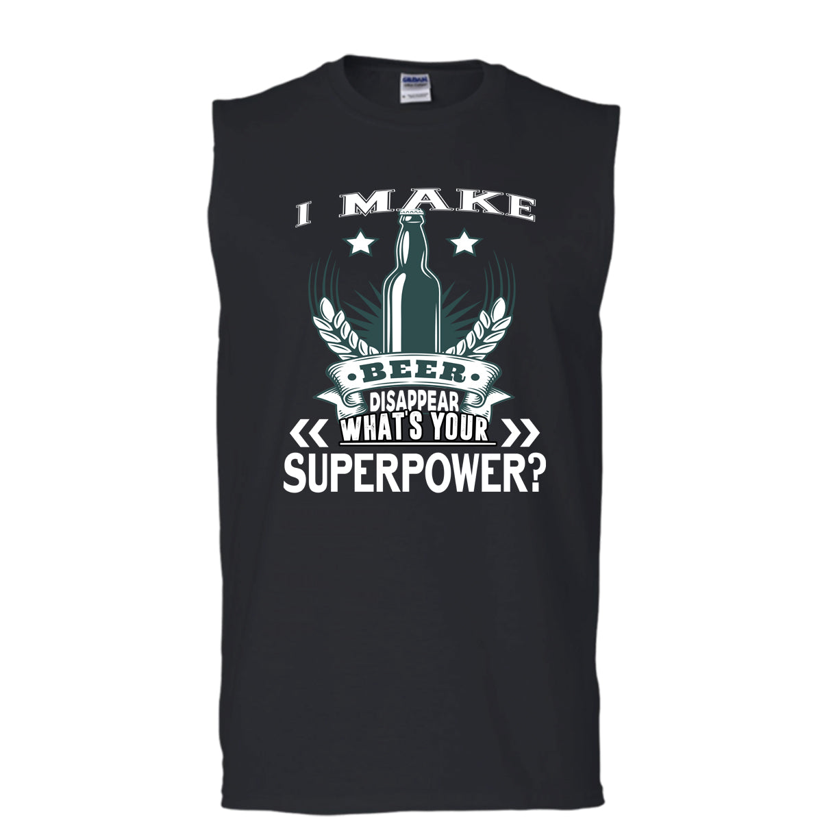 I Make Beer Disapear T Shirt, What's Your Superpower T Shirt, Cool T Shirt (Men's Cotton Sleeveless)