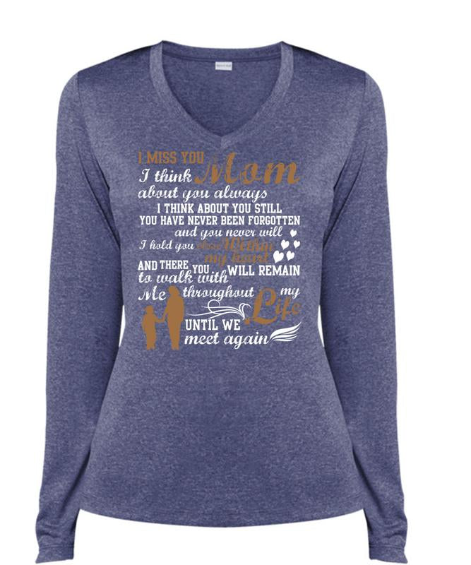 I Miss You Mom T Shirt, I Hold You Within My Heart T Shirt, Cool Shirt (Ladies LS Heather V-Neck)