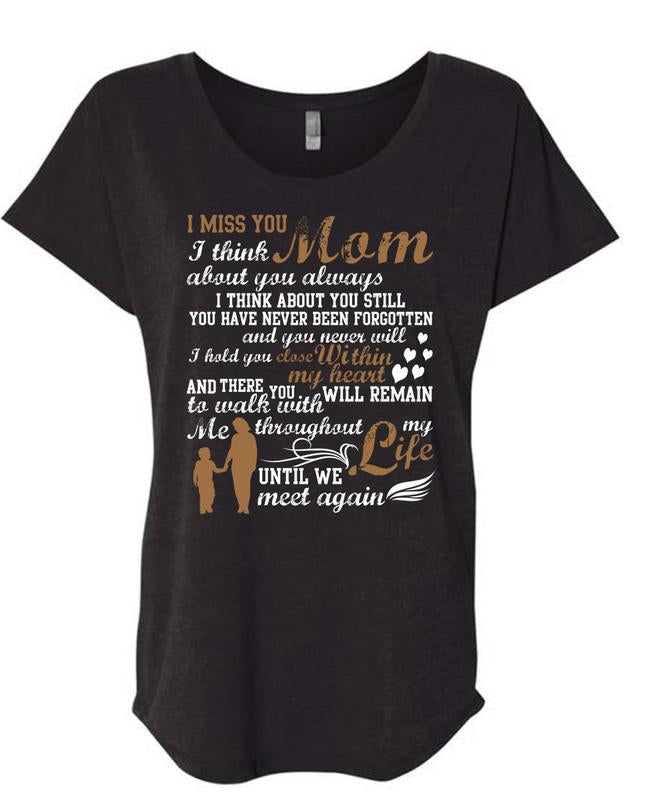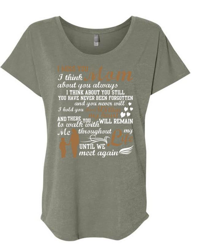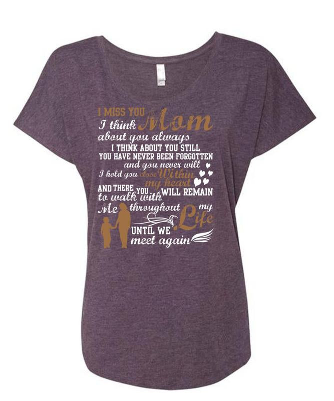 I Miss You Mom T Shirt, I Hold You Within My Heart T Shirt, Cool Shirt (Ladies' Triblend Dolman Sleeve)