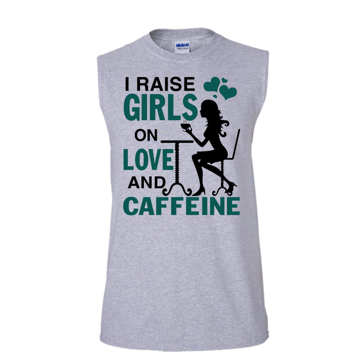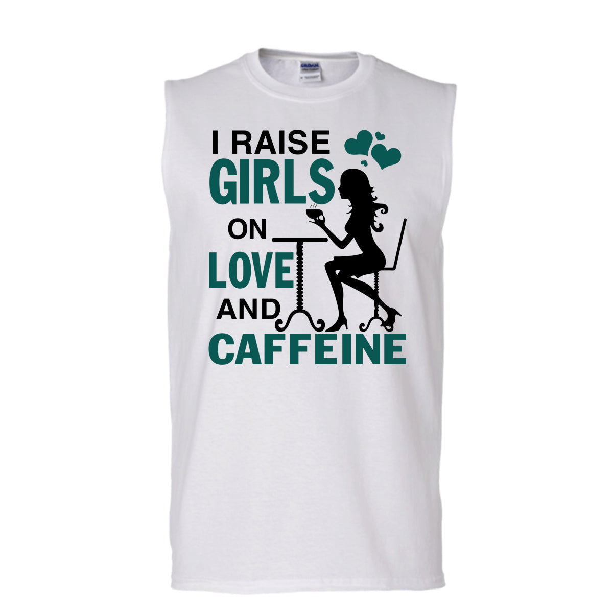 I Raise Girls On Love And Caffeine T Shirt, Cute Caffeine T Shirt, Awesome t-shirts (Men's Cotton Sleeveless)