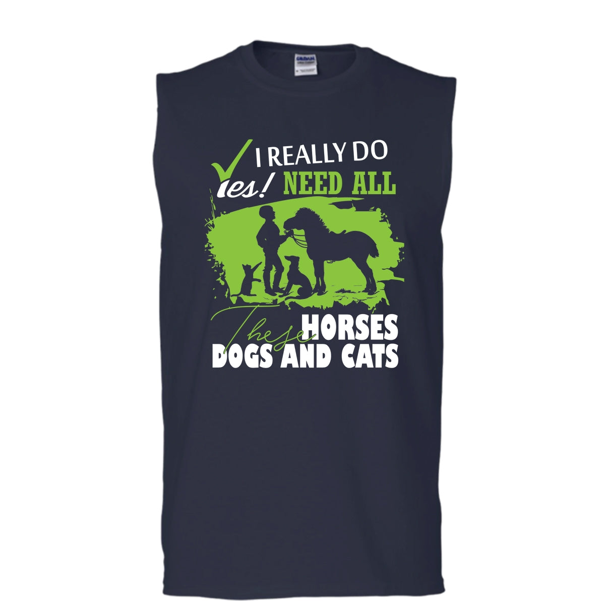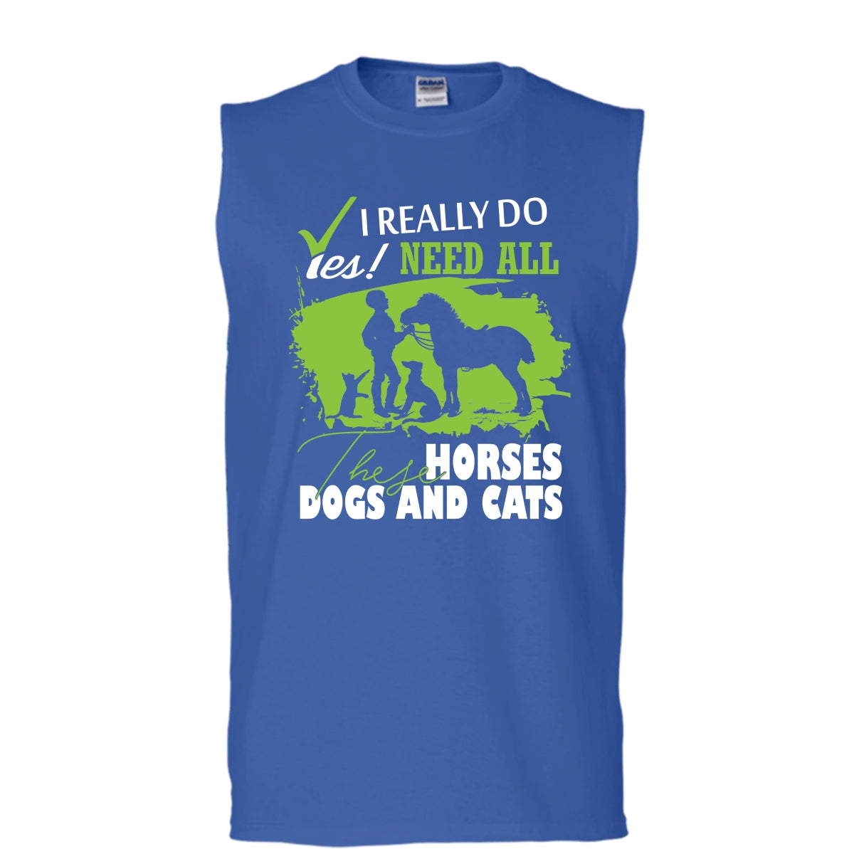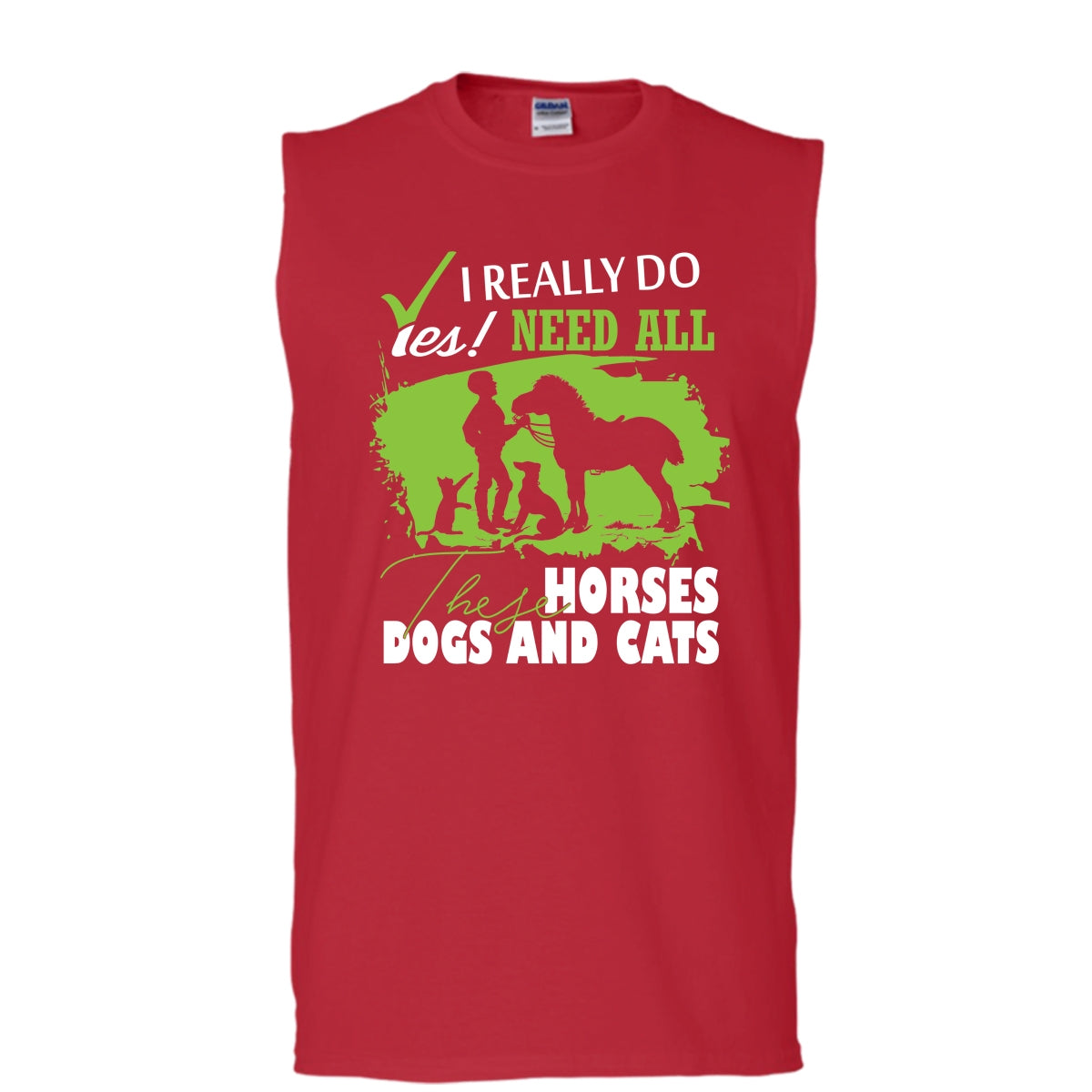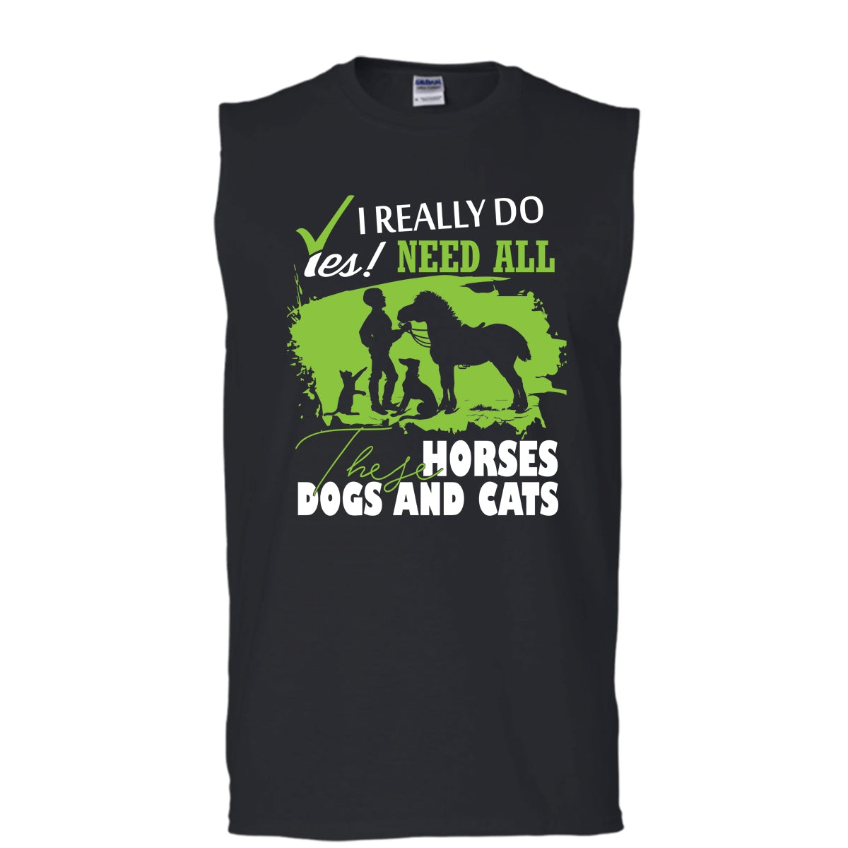 I Really Do Need All T Shirt, These Horses Dogs And Cat Tank Top (Men's Cotton Sleeveless)