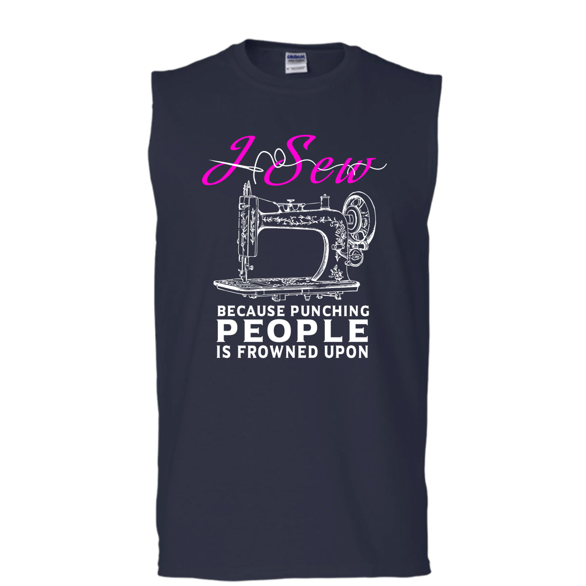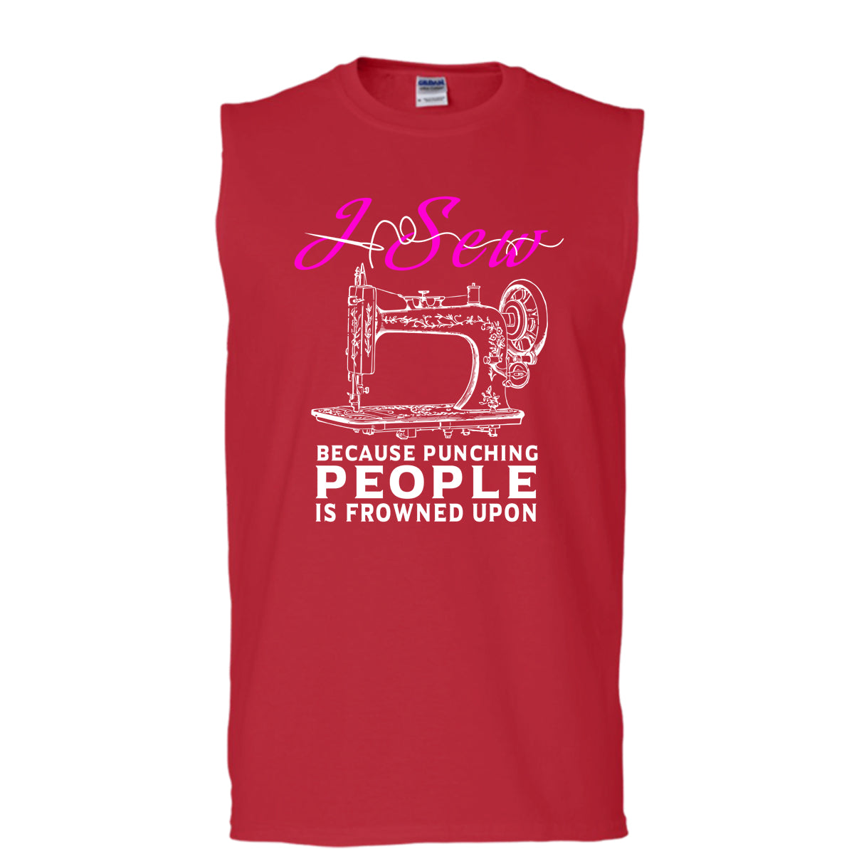I Sew T Shirt, Because Punching People Is Frowned Upon T Shirt, Cool T Shirt (Men's Cotton Sleeveless)