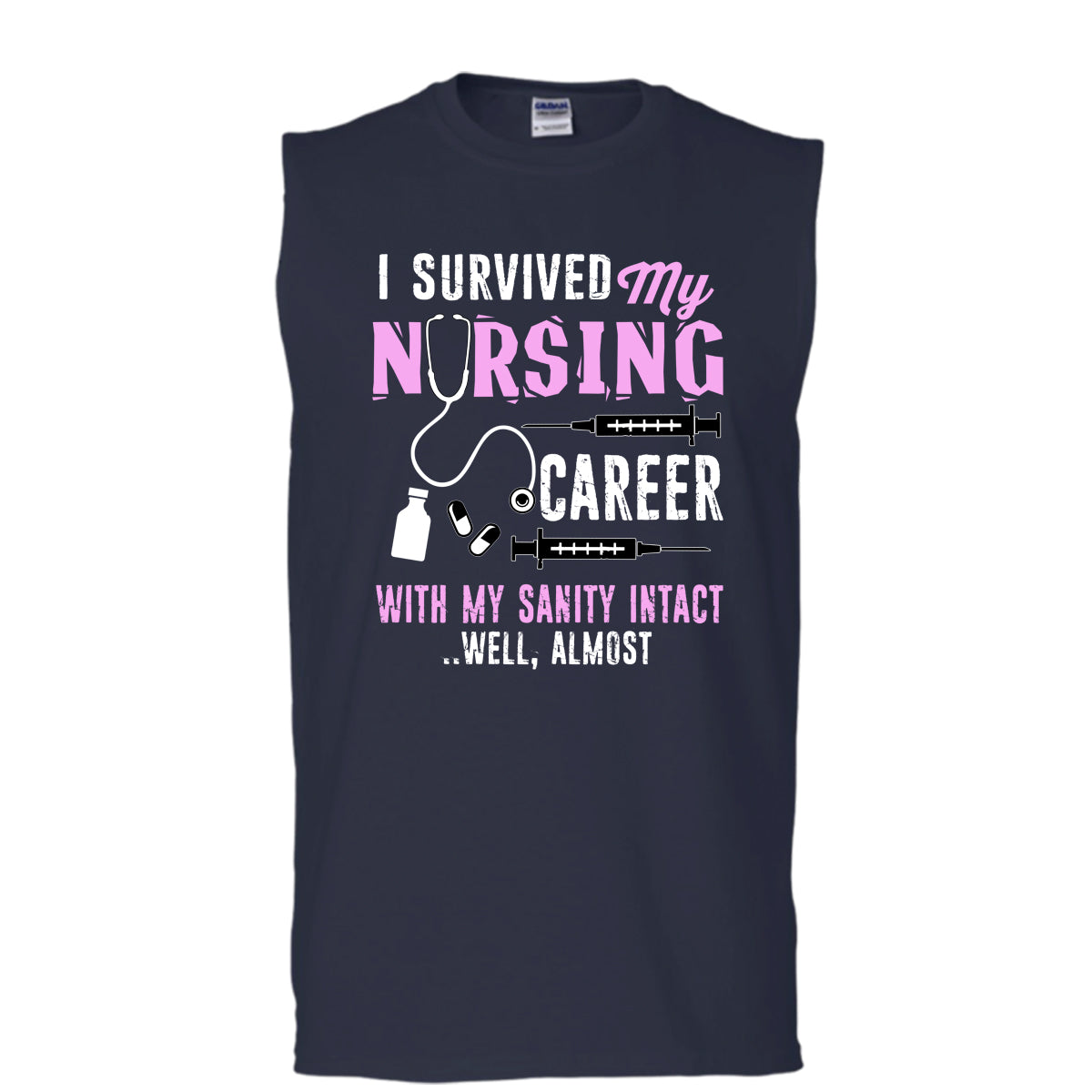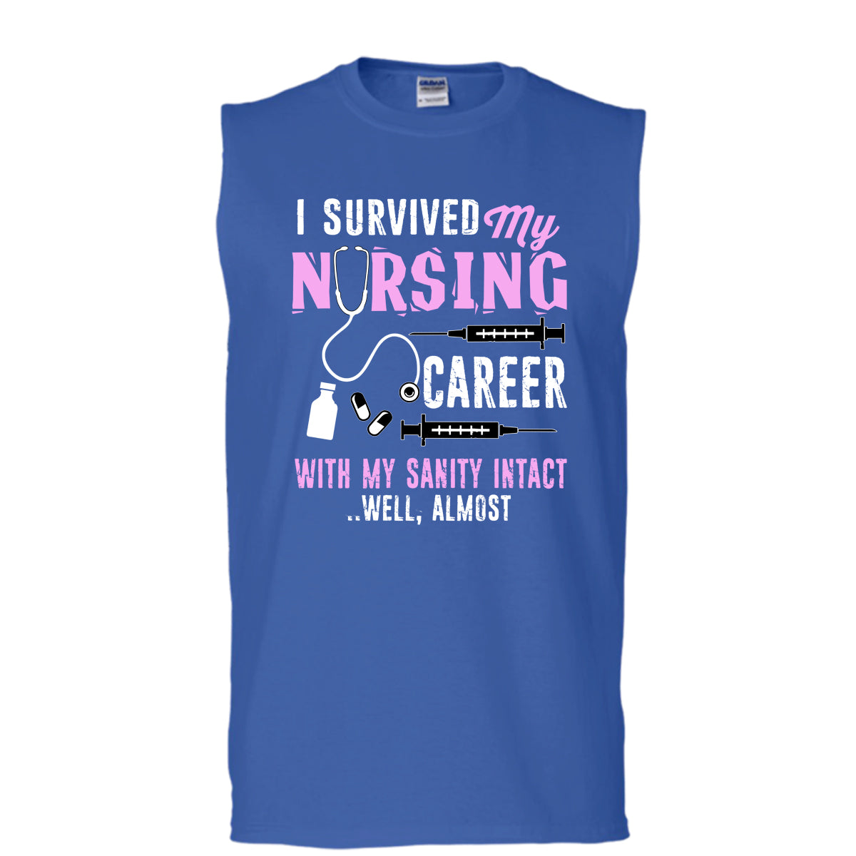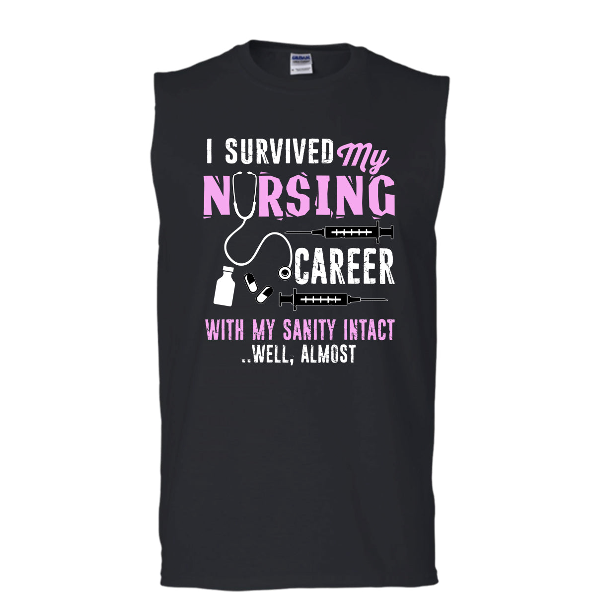 I Survived My Nursing T Shirt, Career With My Sanity Intact T Shirt, Cool T Shirt (Men's Cotton Sleeveless)