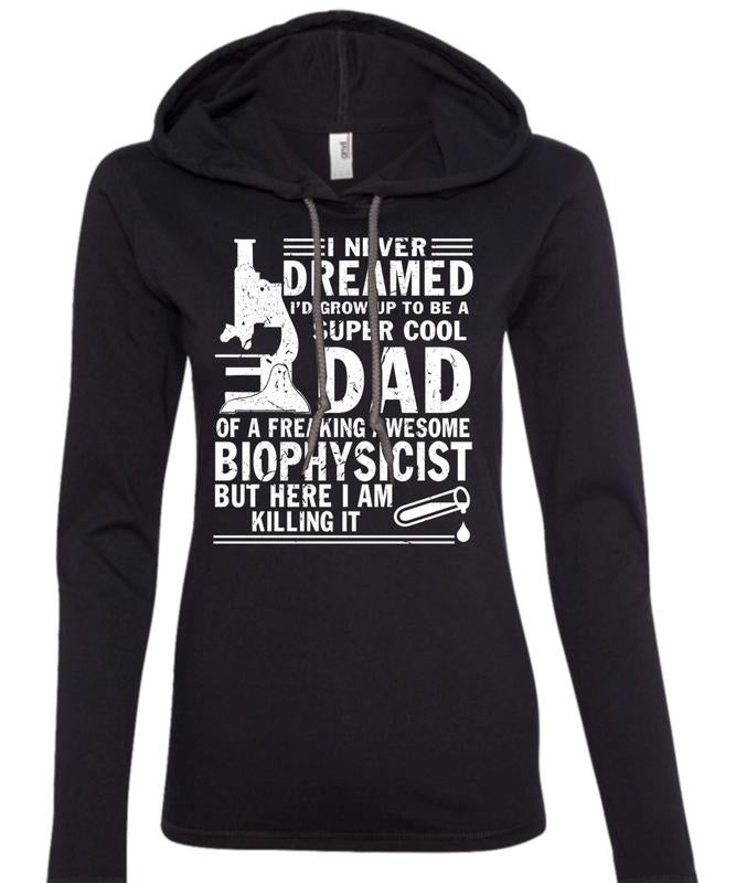 I'd Grow Up To Be A Cool Dad T Shirt, Freaking Awesome Biophysicist T Shirt (Anvil Ladies Ringspun Hooded)