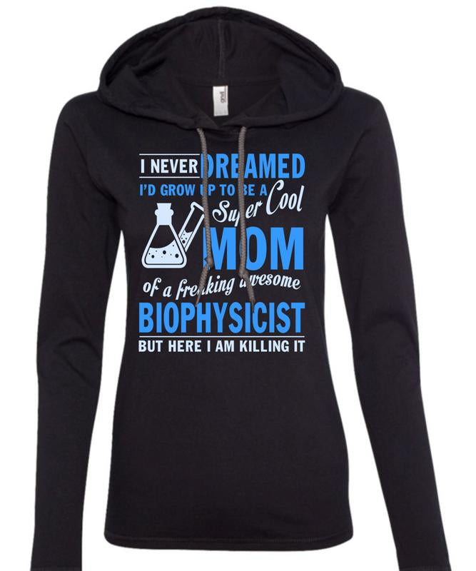 I'd Grow Up To Be A Cool Mom T Shirt, Freaking Awesome Biophysicist T Shirt (Anvil Ladies Ringspun Hooded)
