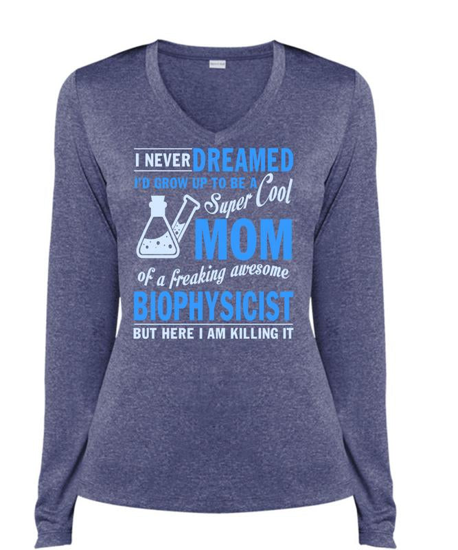 I'd Grow Up To Be A Cool Mom T Shirt, Freaking Awesome Biophysicist T Shirt, Cool Shirt (Ladies LS Heather V-Neck)