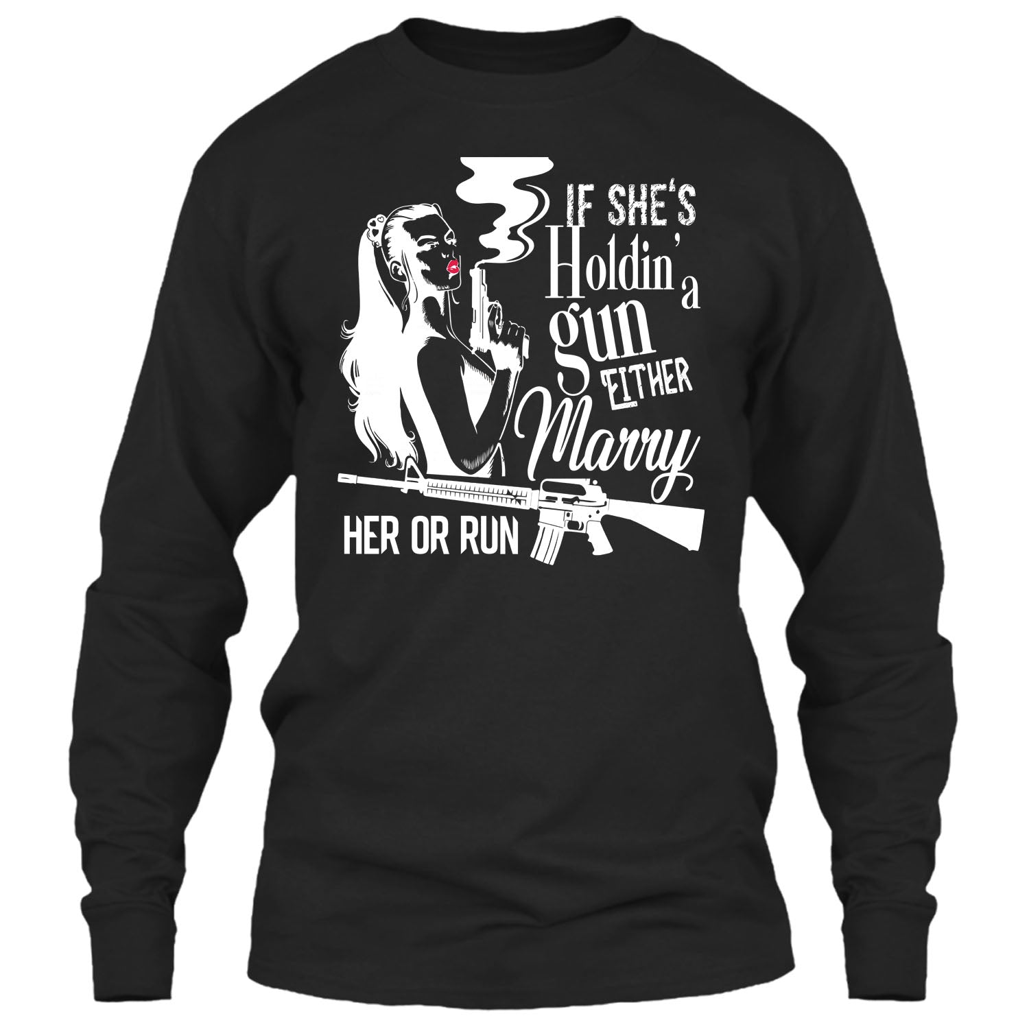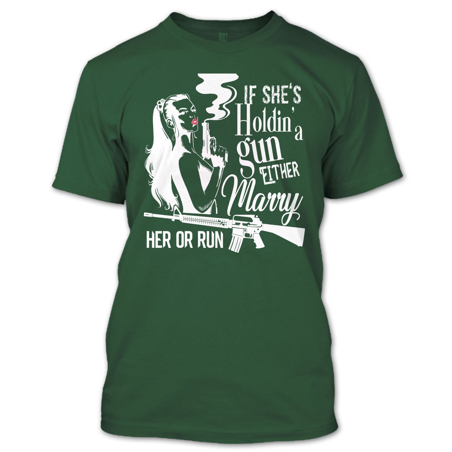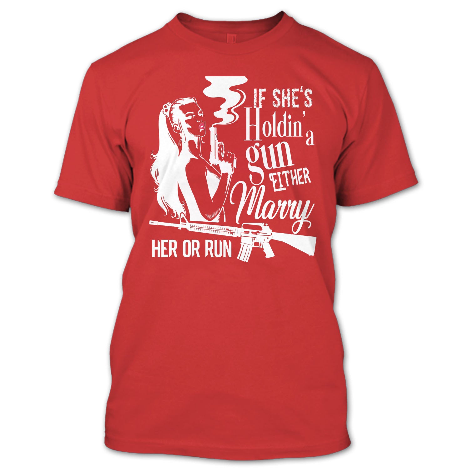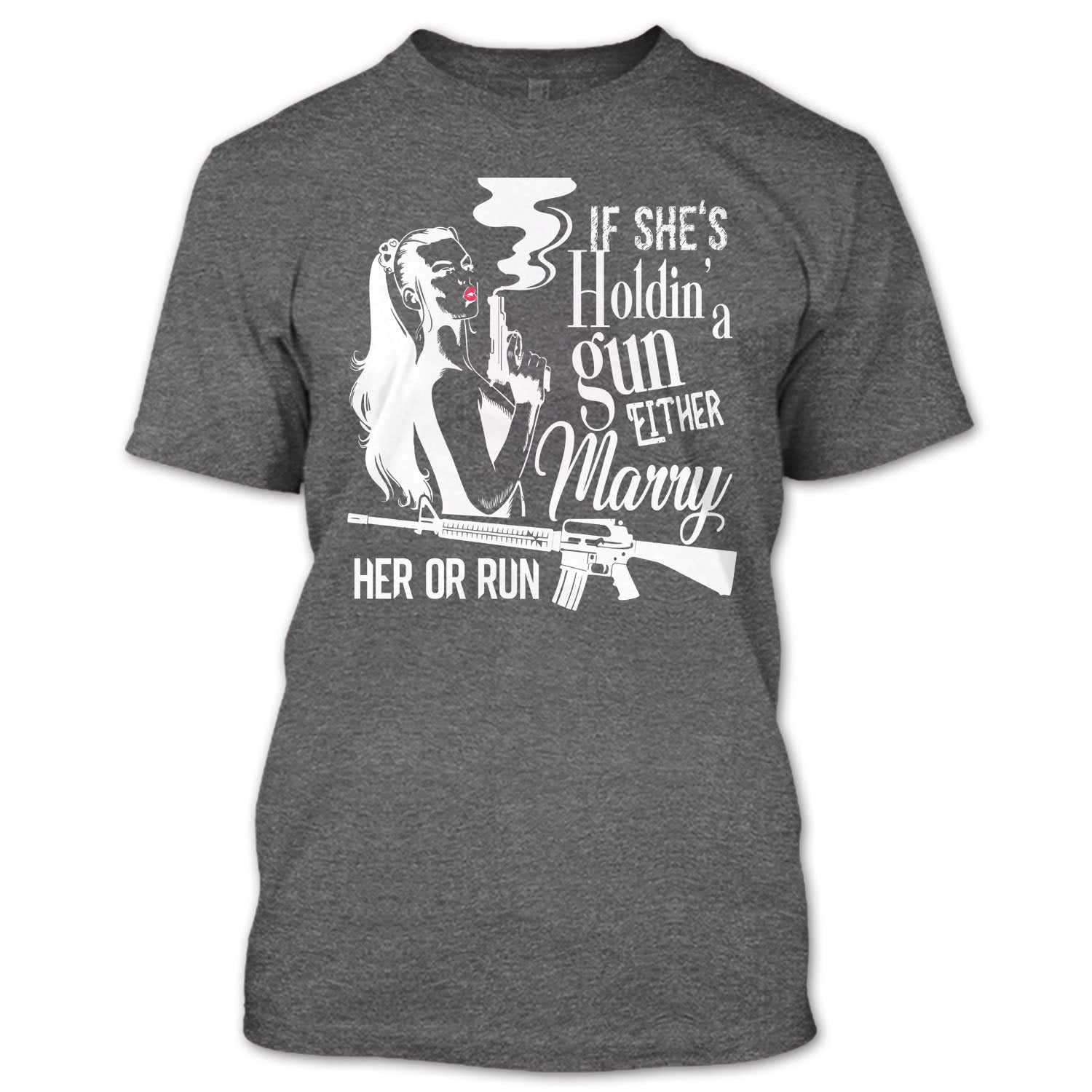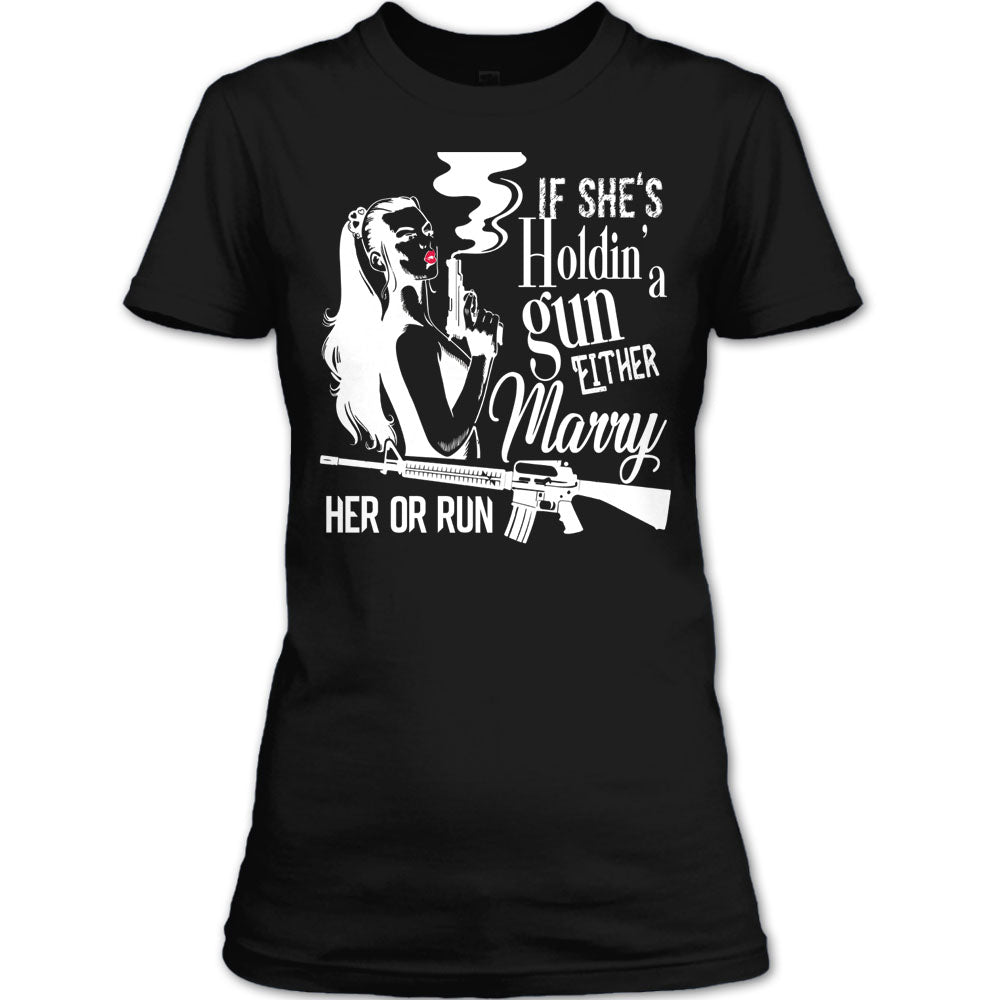 If She's Holdin' A Gun T Shirt, Either Marry Her Or Run T Shirt