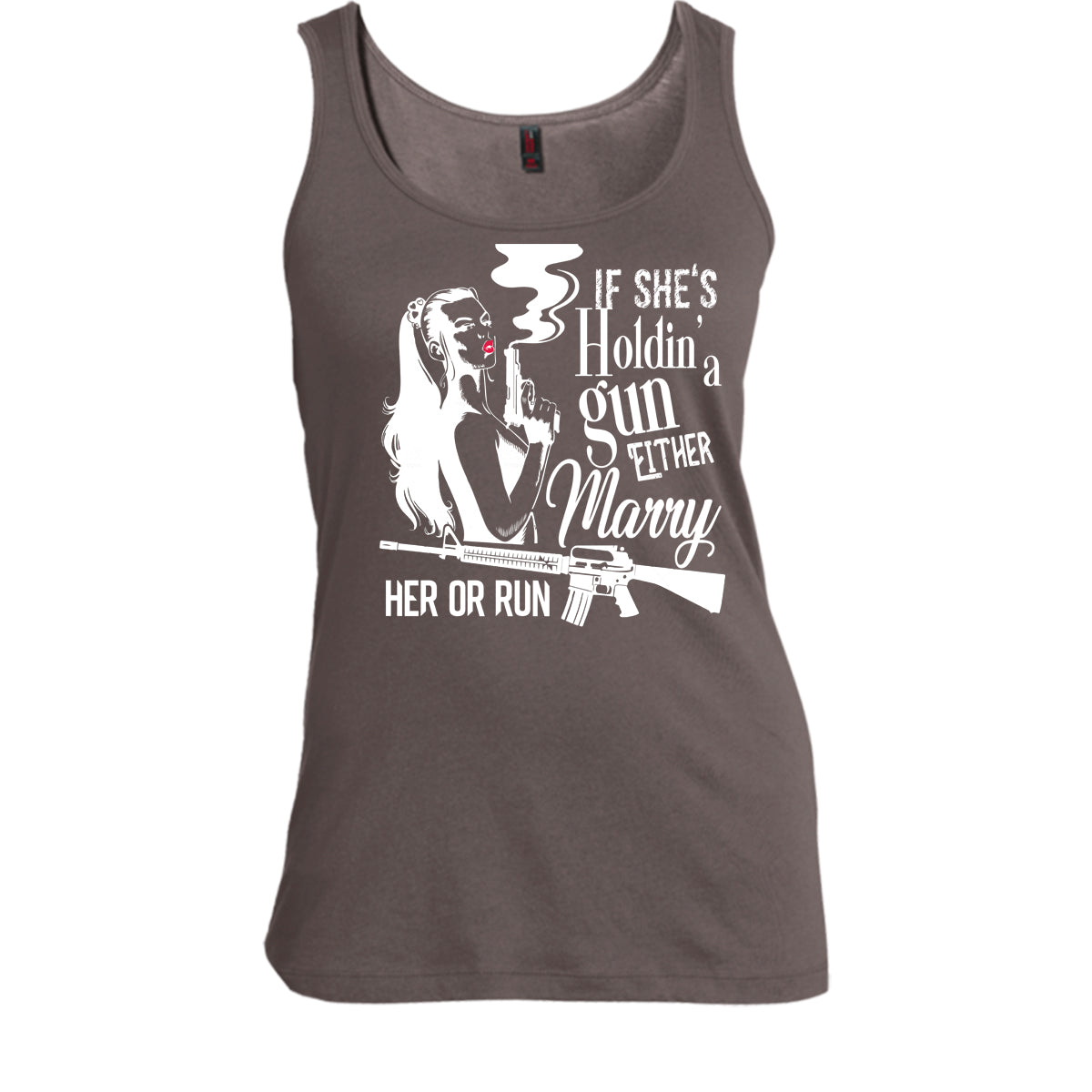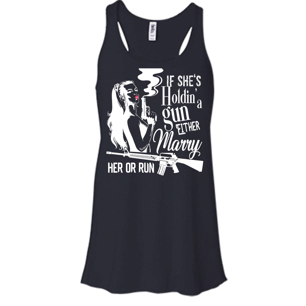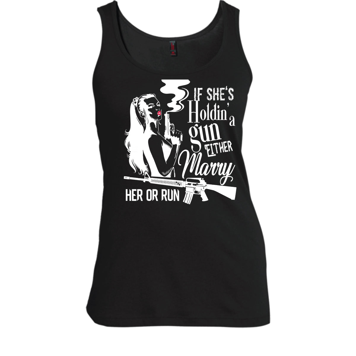 If She's Holdin' A Gun T Shirt, Either Marry Her Or Run T Shirt, Cool T Shirt