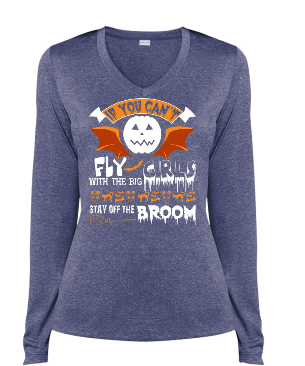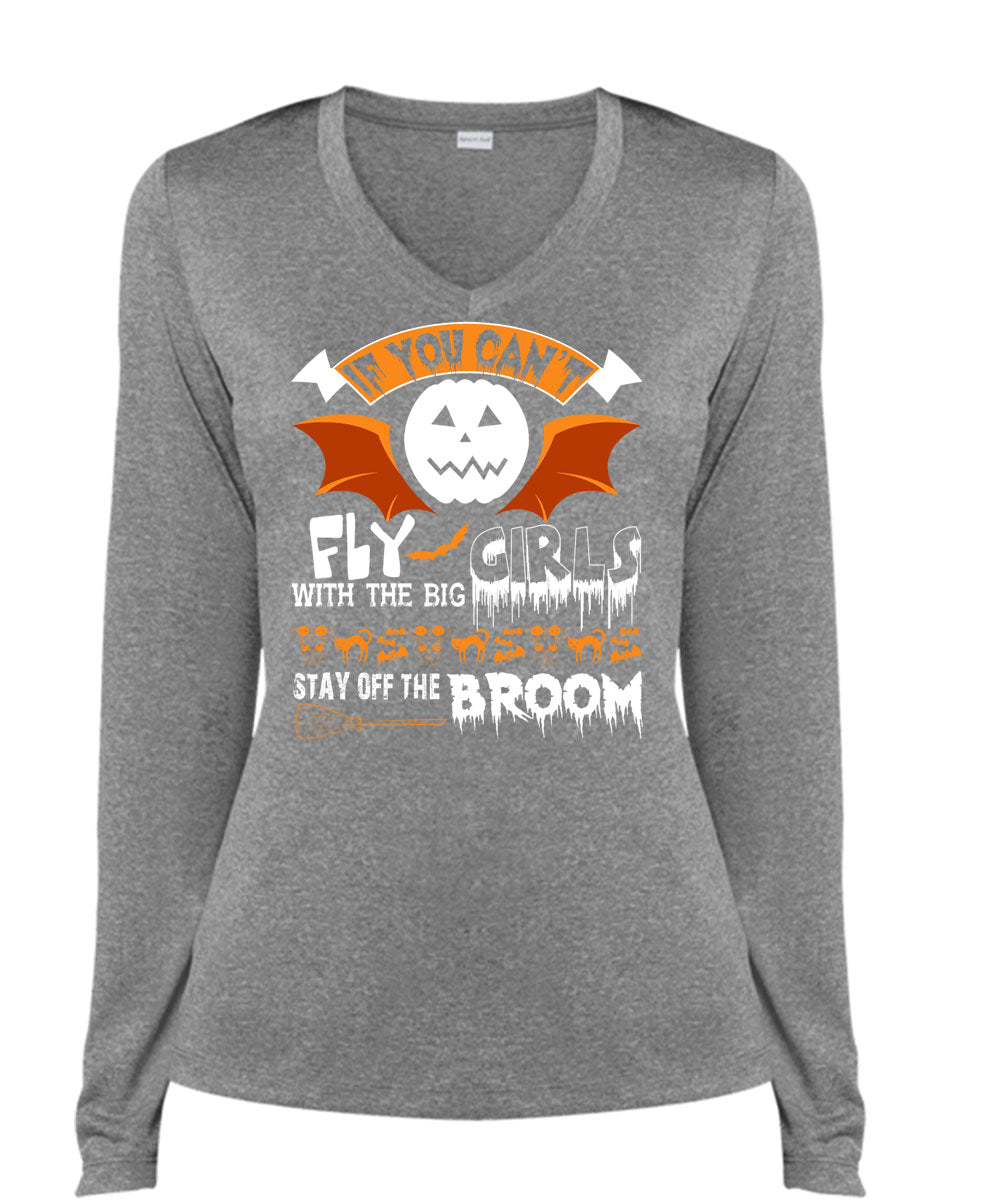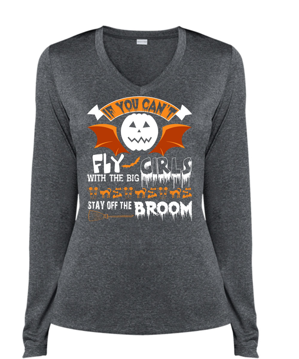 If You Can't Fly The Big Girls T Shirt, Stay Off The Broom T Shirt, Cool Shirt (Ladies LS Heather V-Neck)