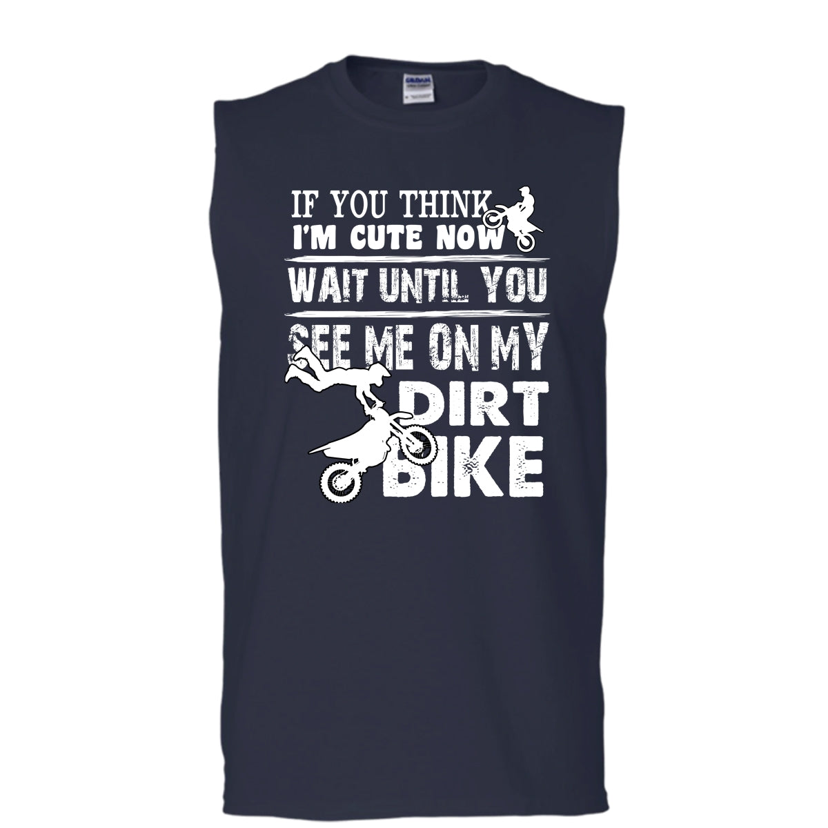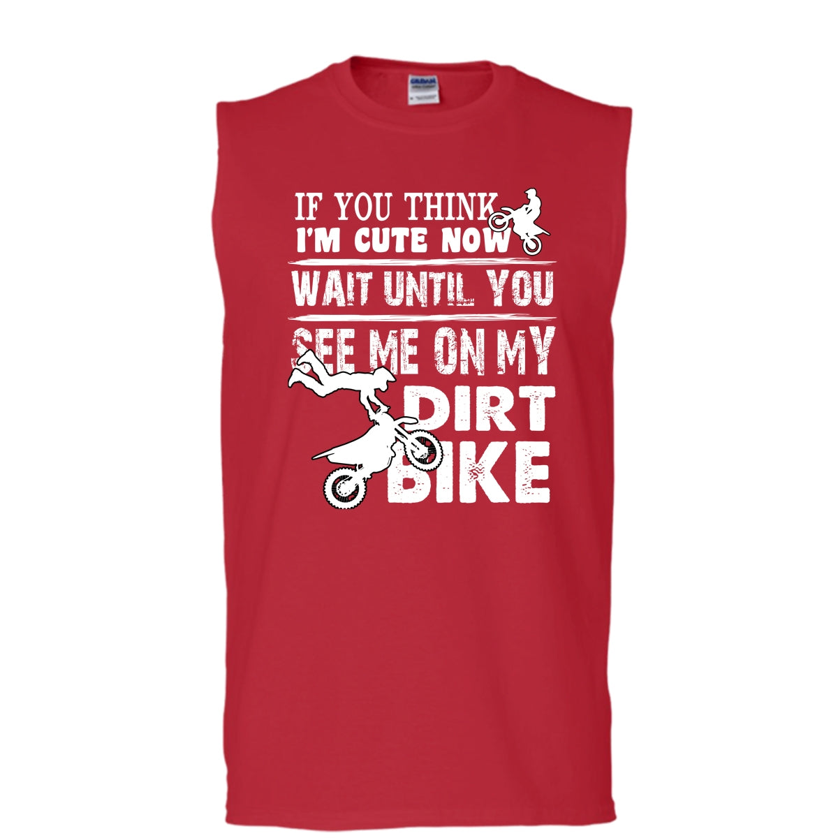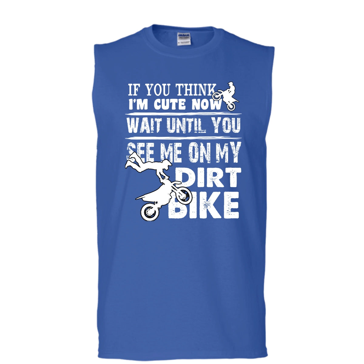If You Think I'm Cute T Shirt, See Me On My Dirt Bike T Shirt, Cool T Shirt (Men's Cotton Sleeveless)