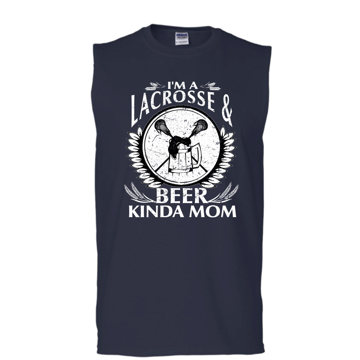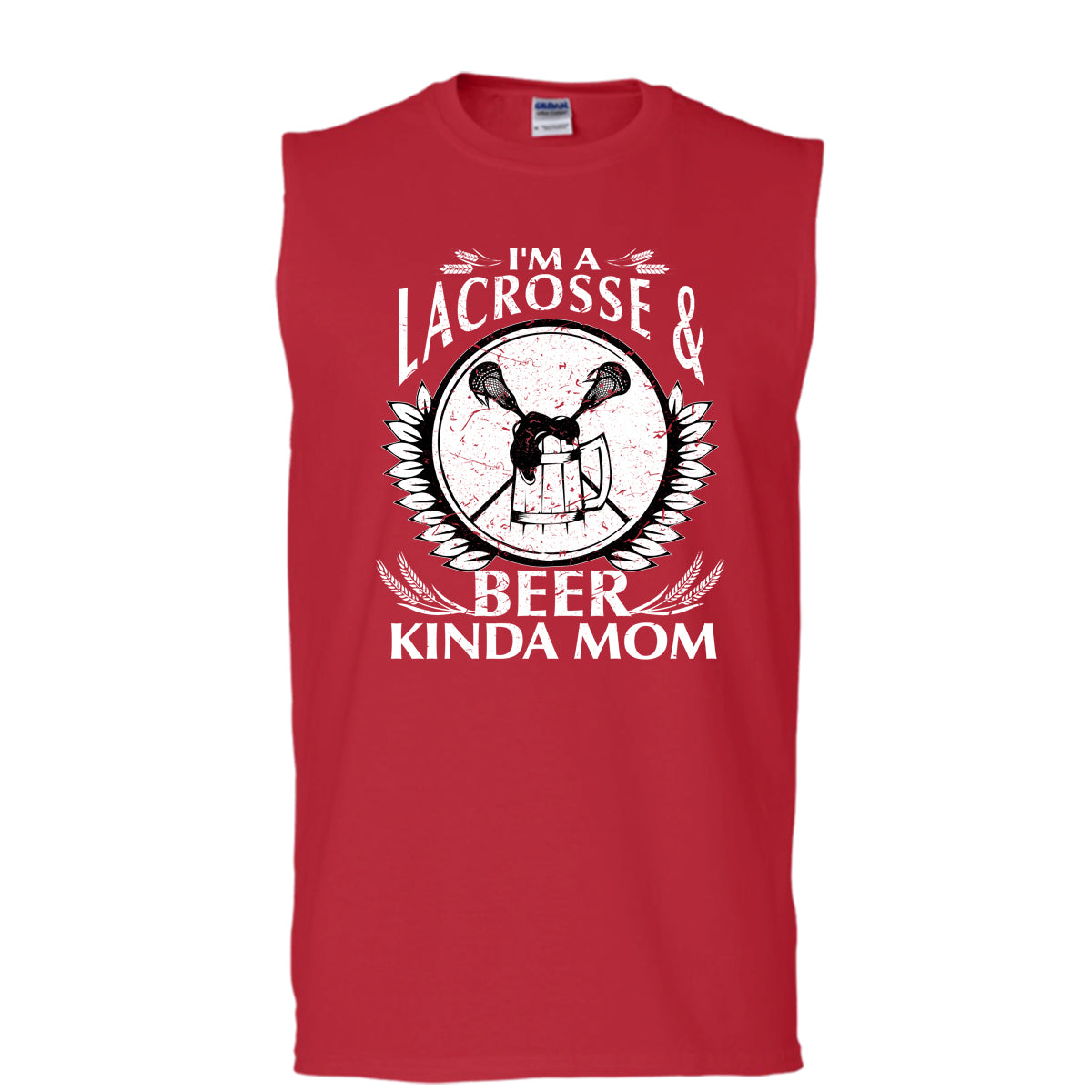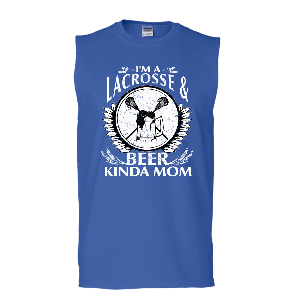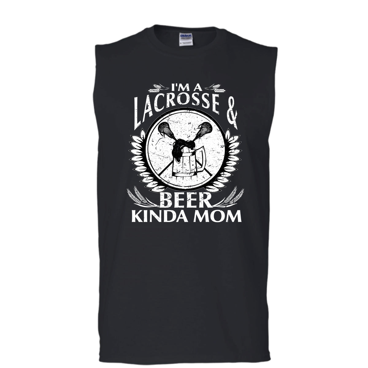 I'm A Lacrosse & Beer Kinda Mom T Shirt, Coolest Lacrosse Player T Shirt, Cool T Shirt (Men's Cotton Sleeveless)