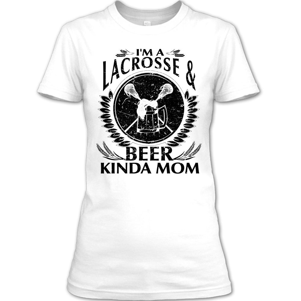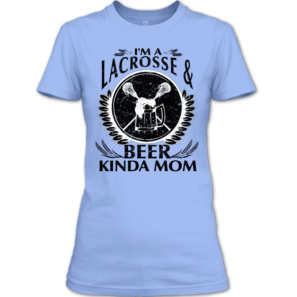 I'm A Lacrosse & Beer Kinda Mom T Shirt, Lacrosse Mom T Shirt