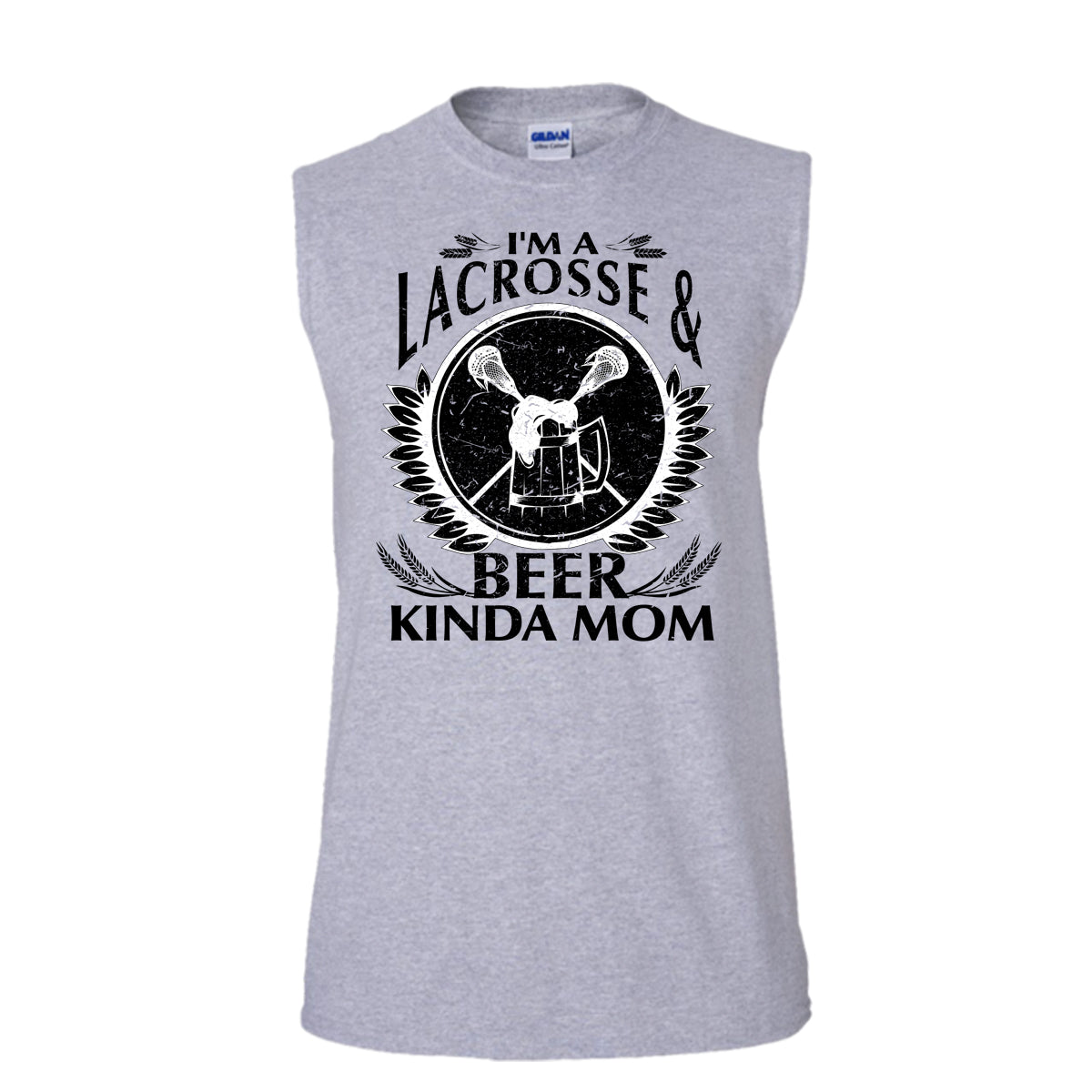 I'm A Lacrosse & Beer Kinda Mom T Shirt, Lacrosse Mom T Shirt, Awesome t-shirts (Men's Cotton Sleeveless)