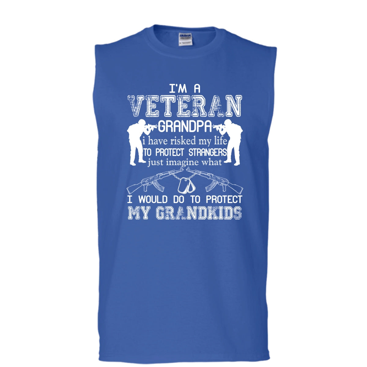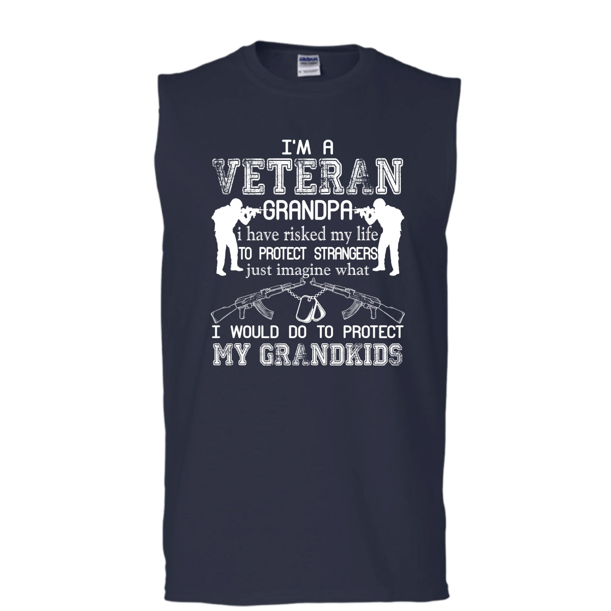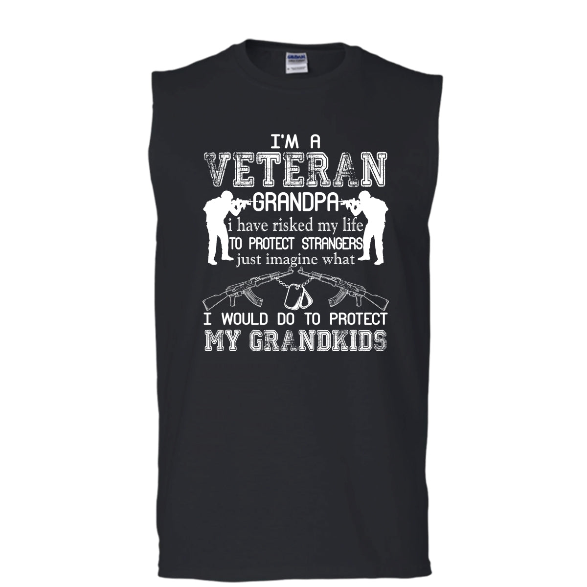 I'm A Veteran Grandpa T Shirt, I'd Do To Protect My Grandkids T Shirt, Cool T Shirt (Men's Cotton Sleeveless)