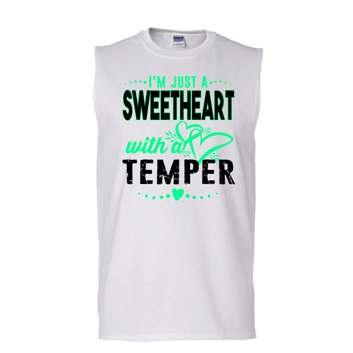 I'm Just A Sweatheart With Temper T Shirt, Funny Temper T Shirt, Awesome t-shirts (Men's Cotton Sleeveless)