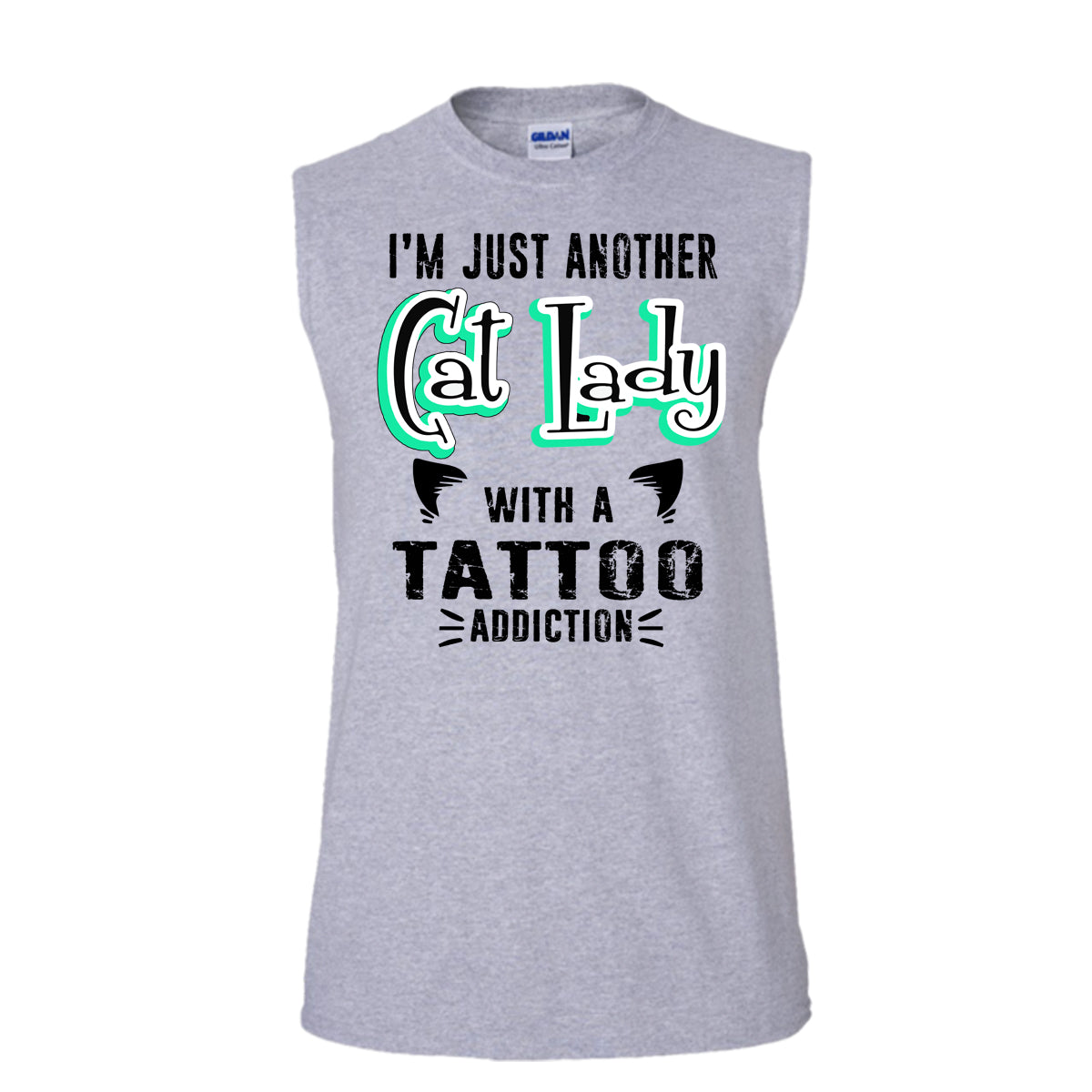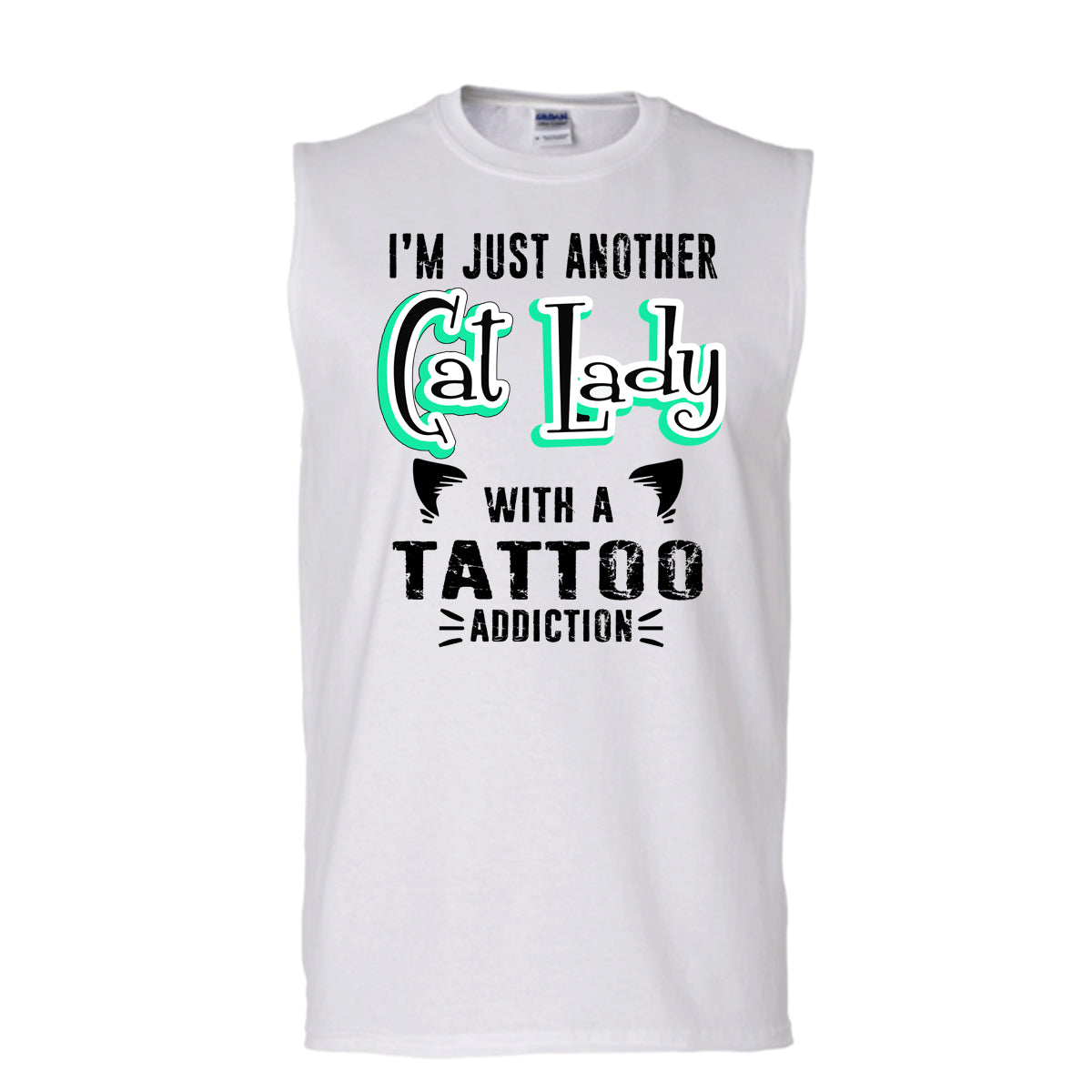 I'm Just Another Cat Lady T Shirt, Coolest Tattoo Addiction T Shirt, Awesome t-shirts (Men's Cotton Sleeveless)