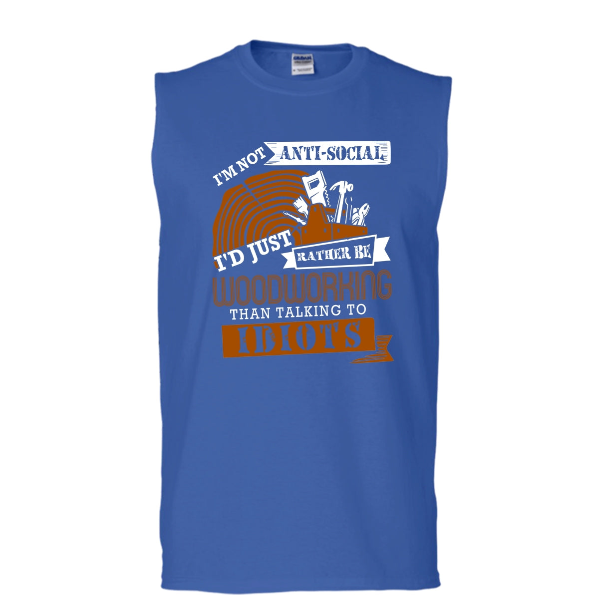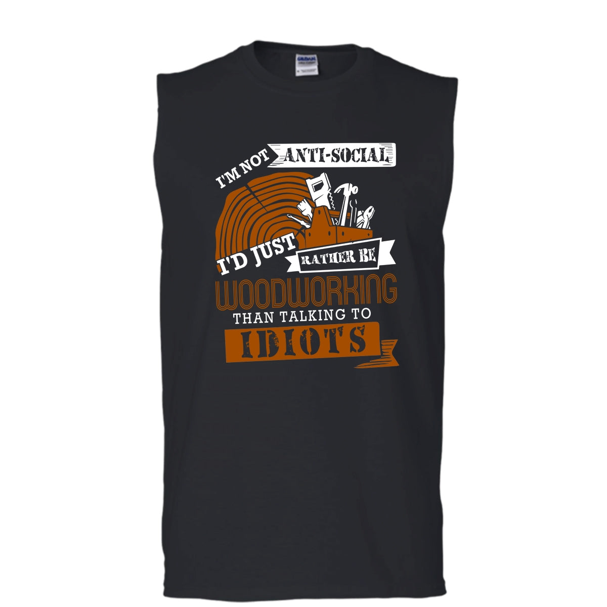 I'm Not Anti-Social T Shirt, I'd Just Rather Be Woodworking Tank Top (Men's Cotton Sleeveless)