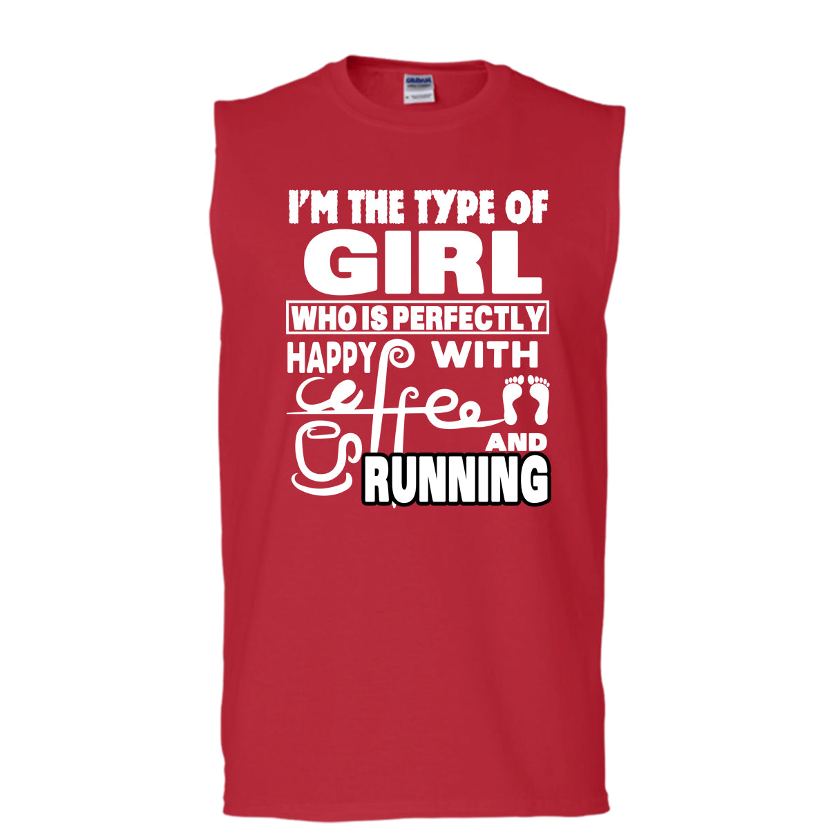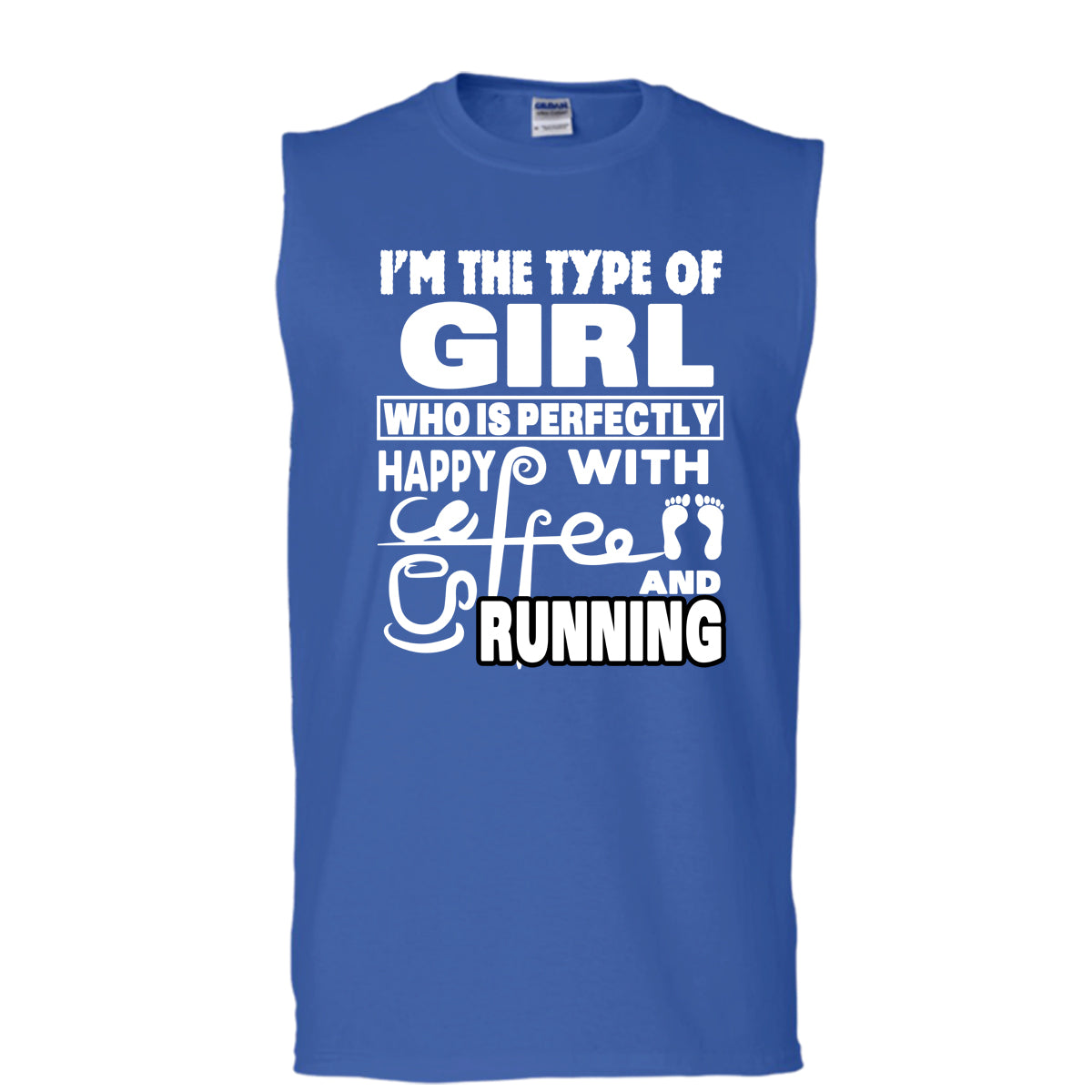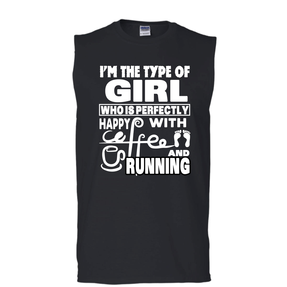 I'm The Type Of Girl T Shirt, Happy With Coffee And Running T Shirt, Cool T Shirt (Men's Cotton Sleeveless)