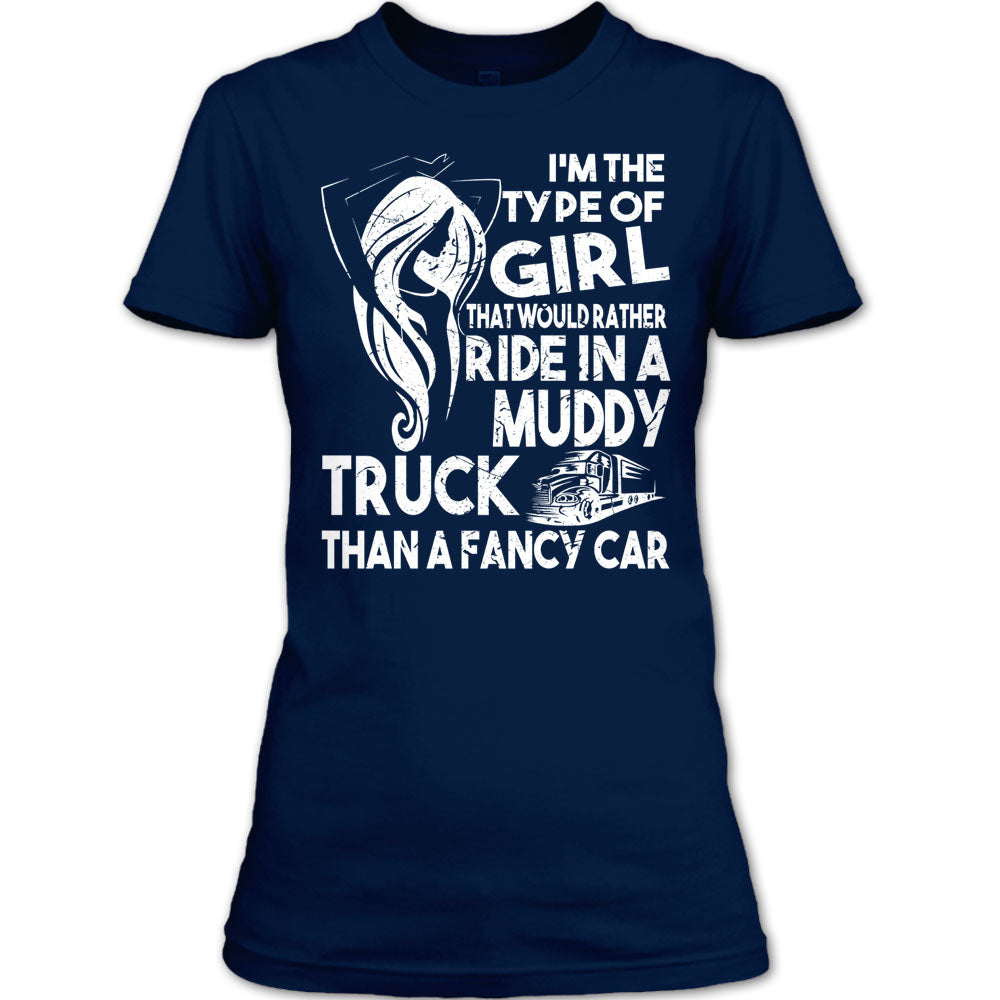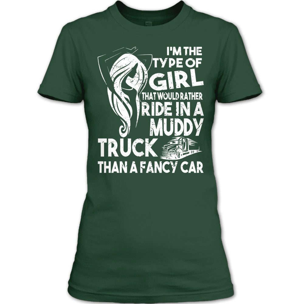 I'm The Type Of Girl T Shirt, That Would Rather Ride In A Muddy Truck T Shirt