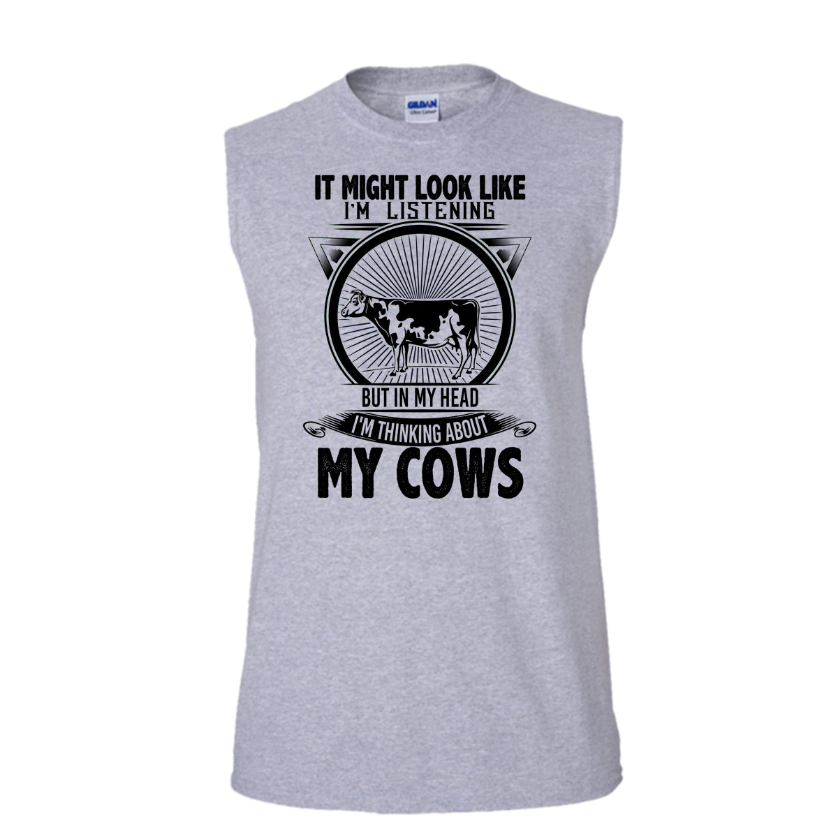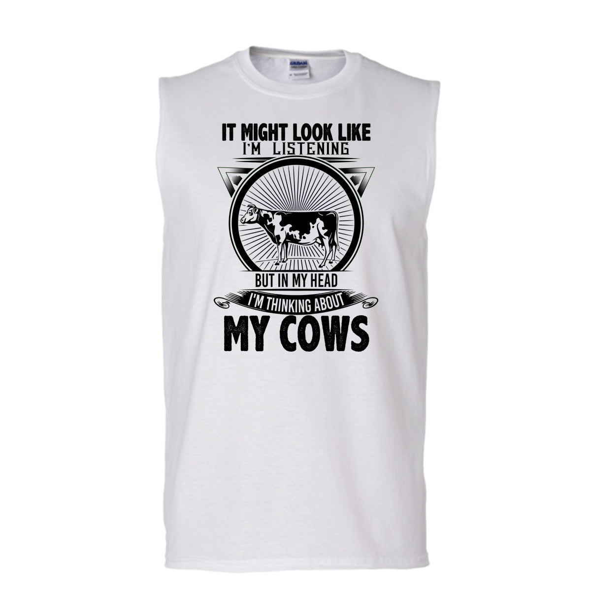 I'm Thinking About My Cows T Shirt, I Am A Farmer T Shirt, Awesome t-shirts (Men's Cotton Sleeveless)