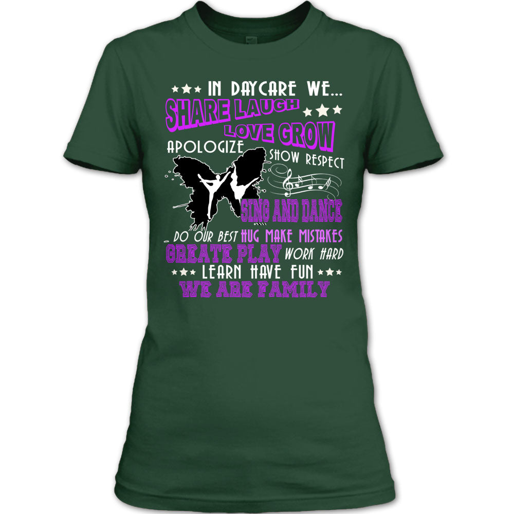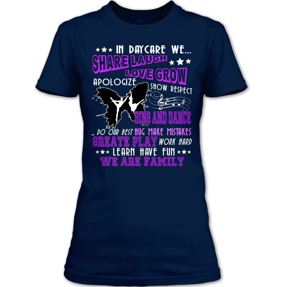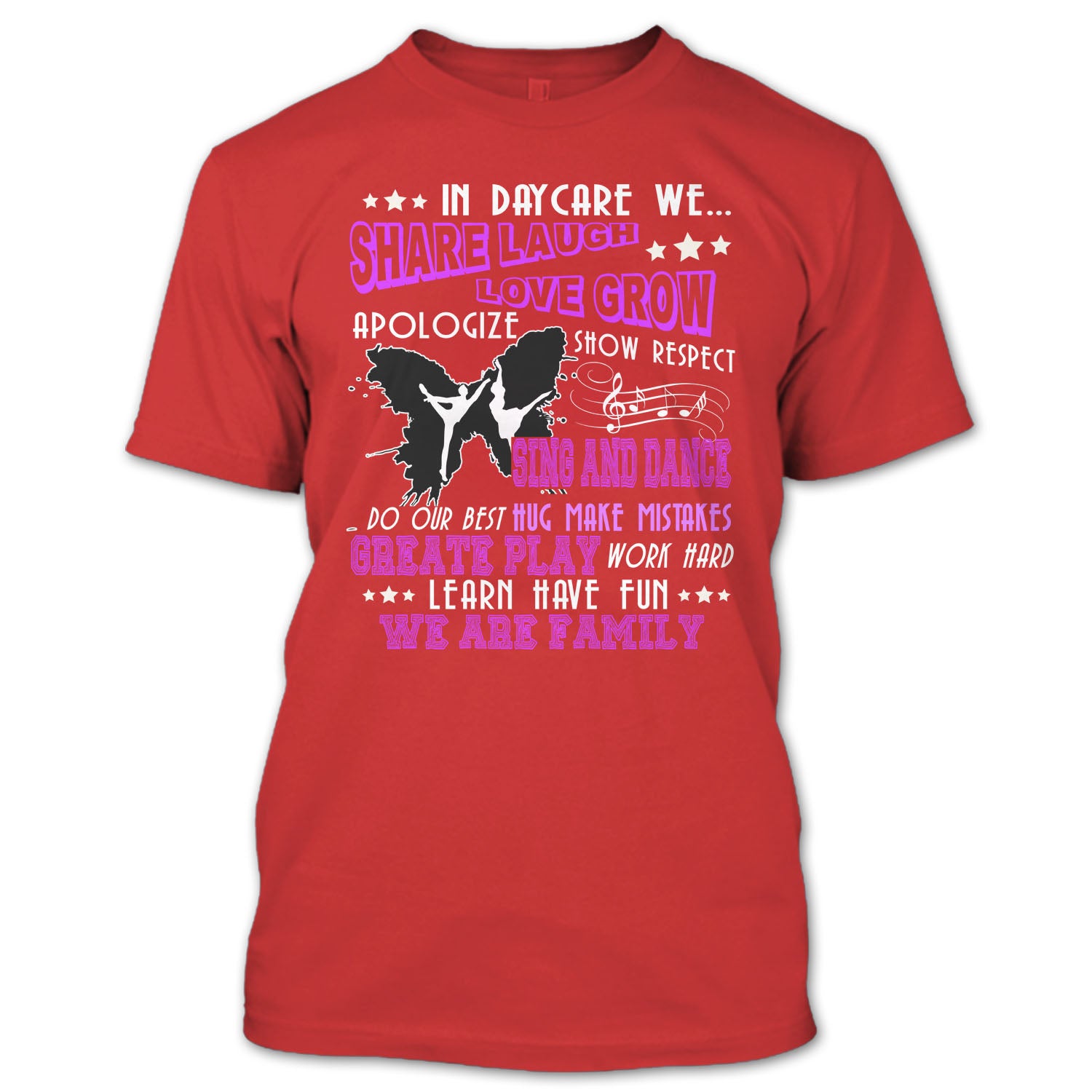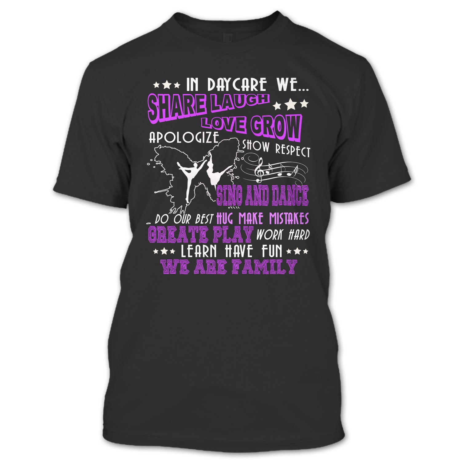 In Day Care We Share Laugh T Shirt, We Sing And Dance T Shirt