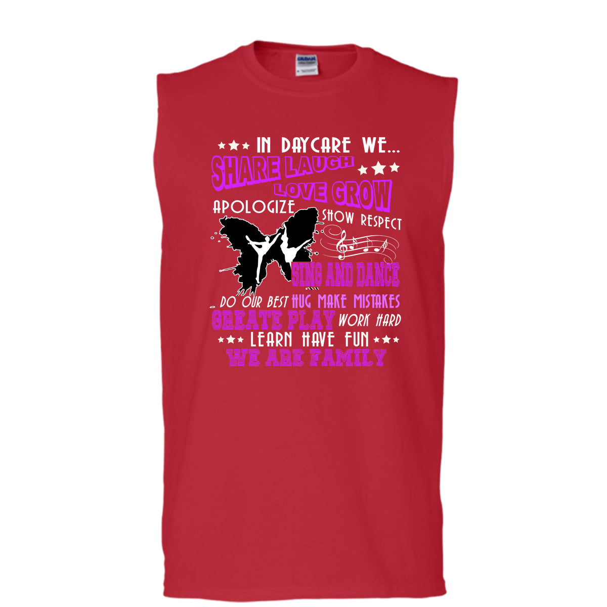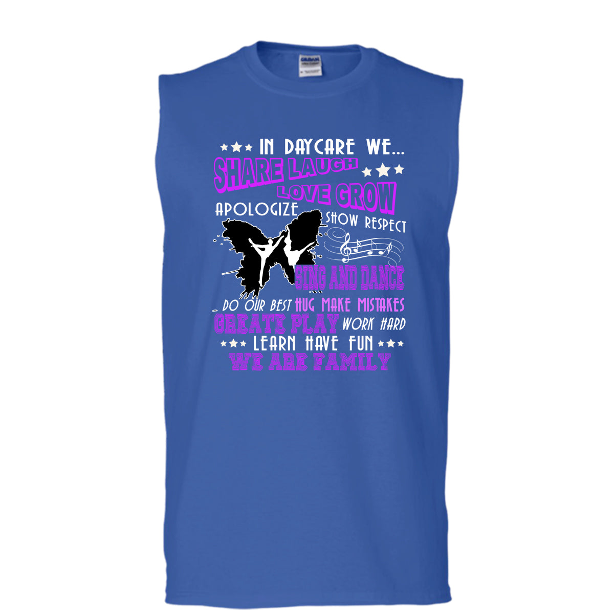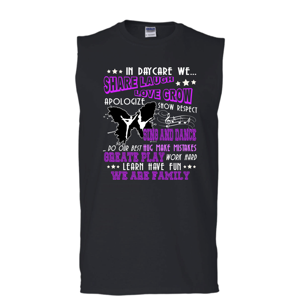 In Day Care We Share Laugh T Shirt, We Sing And Dance T Shirt, Cool T Shirt (Men's Cotton Sleeveless)