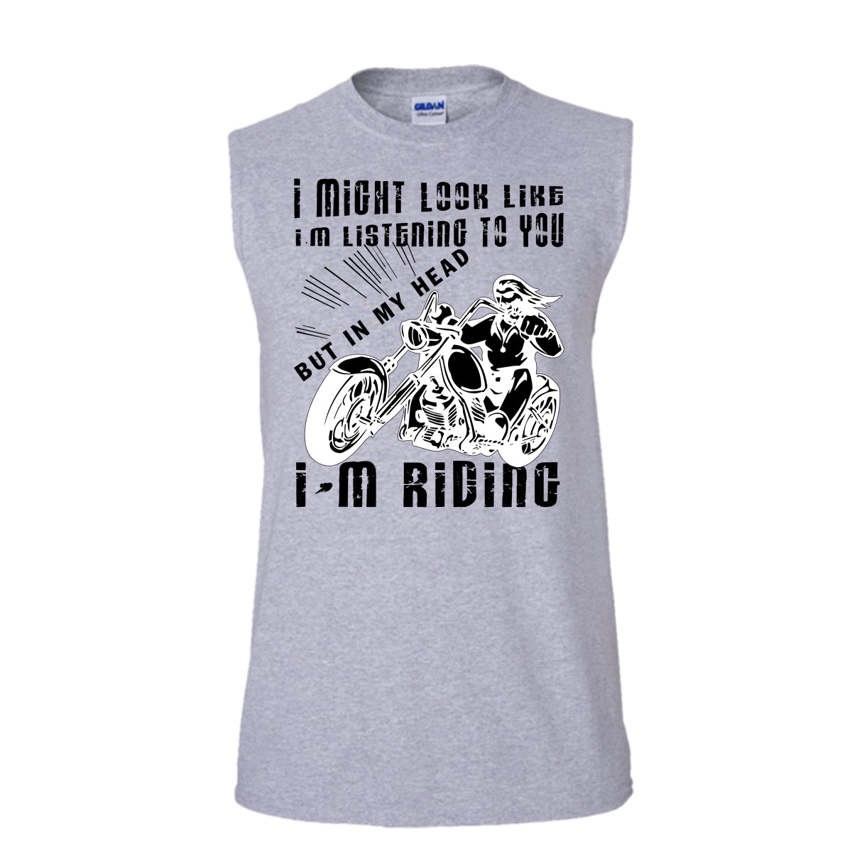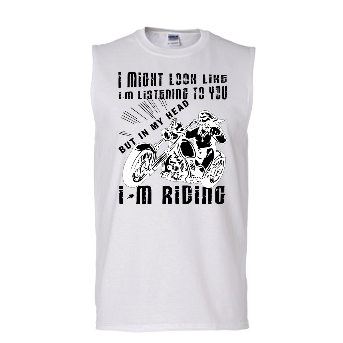 In My Head I'm Riding T Shirt, Coolest Biker T Shirt, Awesome t-shirts (Men's Cotton Sleeveless)
