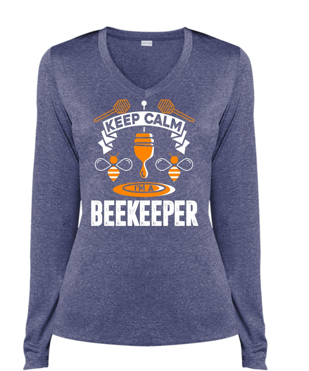 Keep Calm I'm A Beekeeper T Shirt, Being A Beekeeper T Shirt, Cool Shirt (Ladies LS Heather V-Neck)