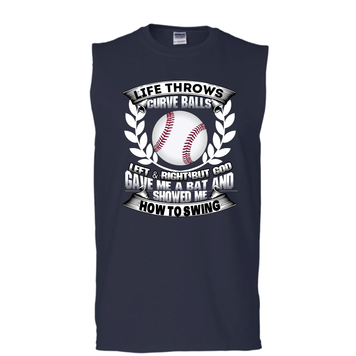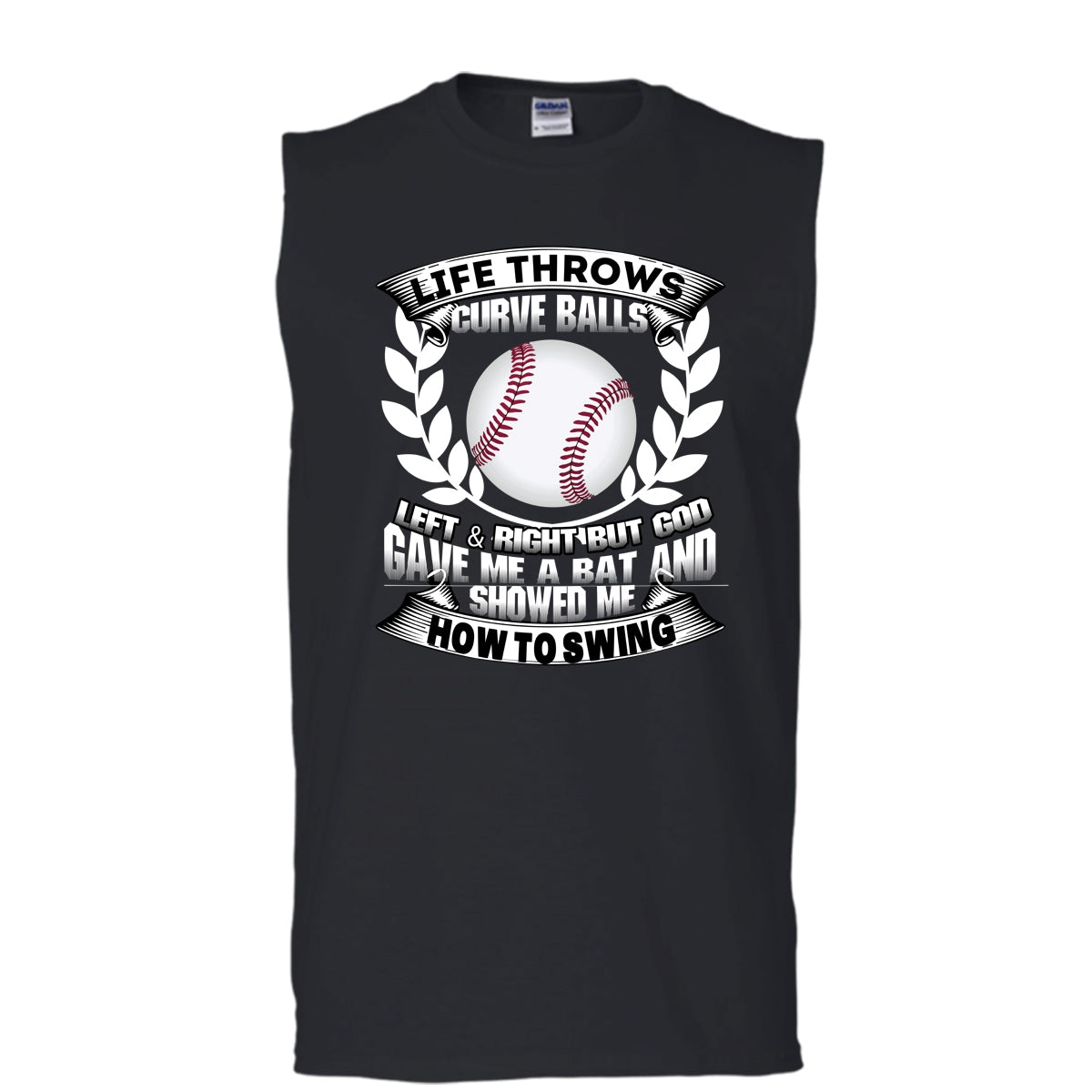 Life Throws Curve Balls T Shirt, Coolest Baseball T Shirt, Cool T Shirt (Men's Cotton Sleeveless)