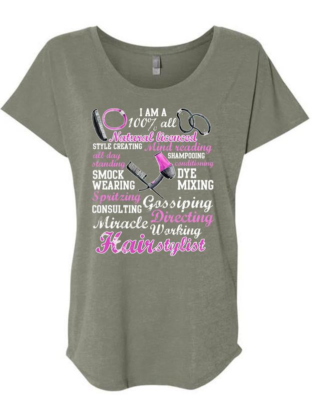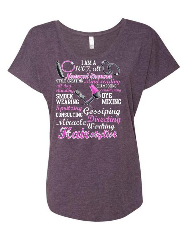 Miracle Working Hair Stylist T Shirt, I Love Hair Stylist T Shirt, Cool Shirt (Ladies' Triblend Dolman Sleeve)