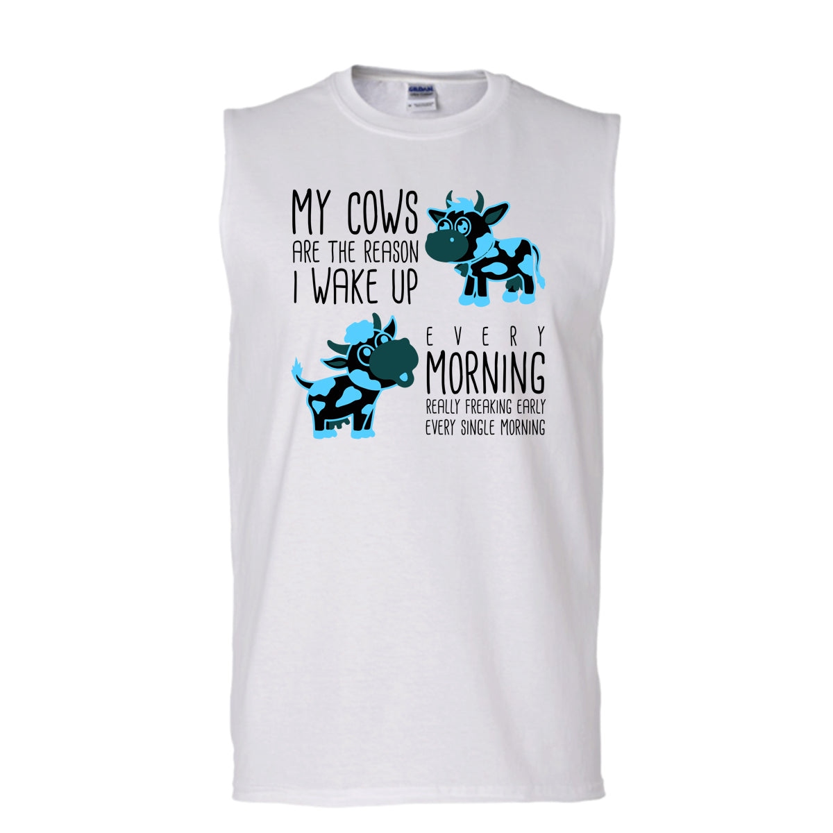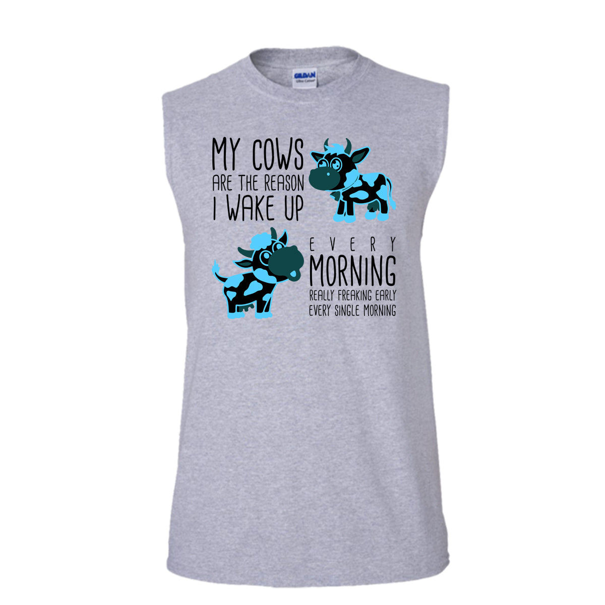 My Cows Are The Reason I Wake Up T Shirt, Coolest Cow Lovers T Shirt, Awesome t-shirts (Men's Cotton Sleeveless)